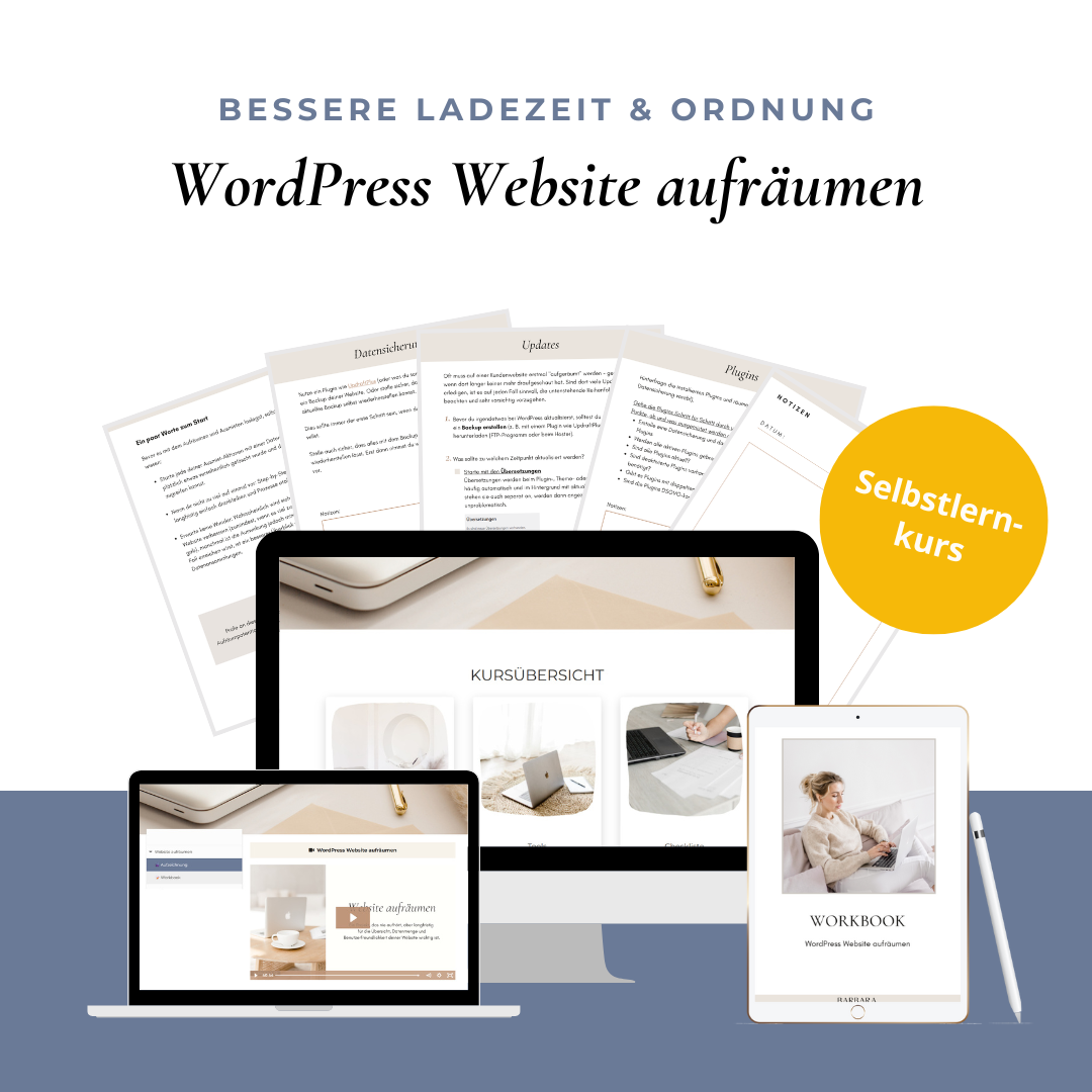 Wenn das gerade deine "Baustelle" ist, dann bist du hier genau richtig beim Minikurs "WordPress Website aufräumen"! In diesem Selbstlernkurs erfährst du, wie du vorgehen kannst und erhältst ein Workbook, Checkliste und eine Menge Tipps, damit das Aufräumen auch wirklich effektiv ist.