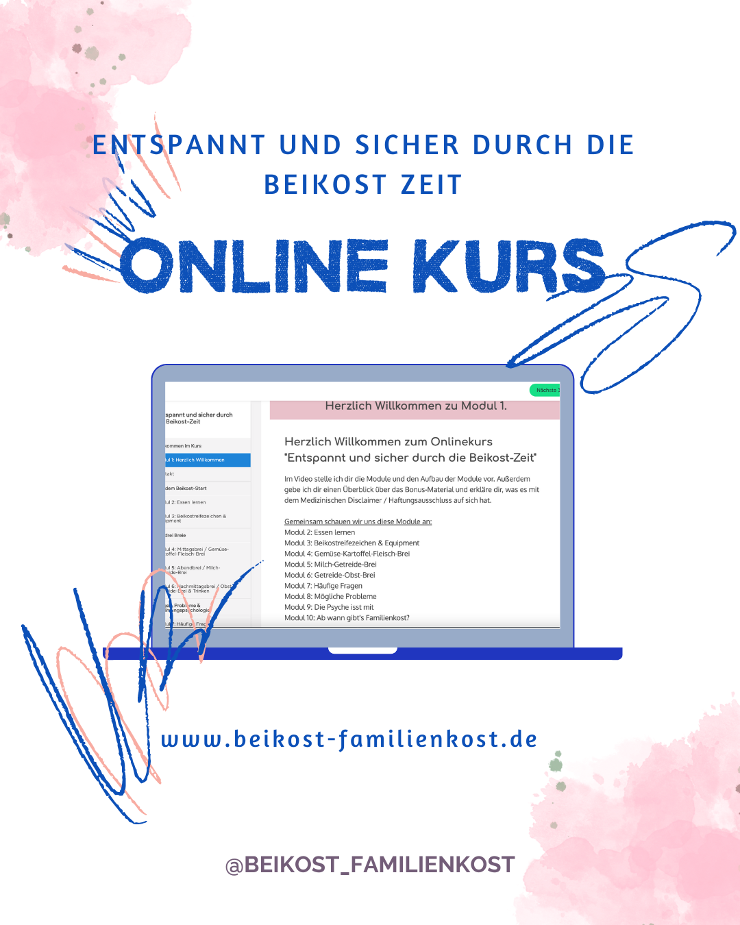 - Du dich ausschließlich für BLW (Baby led-weaning) interessierst. (Wir gehen im Kurs kurz auf dieses Thema ein)