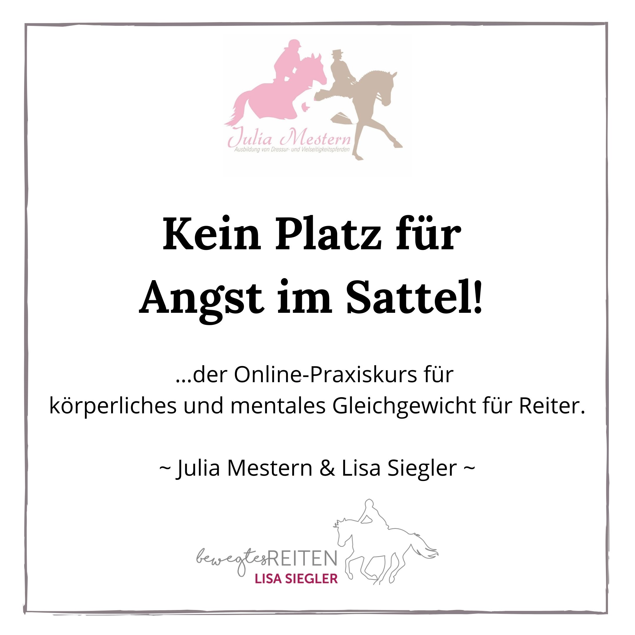 Angst im Sattel sollte kein Tabuthema sein. Angst ist wertvoll. Angst kann lähmen. Das richtige Maß ist entscheidend! Jeder kann lernen, damit umzugehen. Wir zeigen Dir wie - praxisnah und fundiert ohne "Hokuspokus". Letztendlich geht es darum, als Reiter sowohl köperlich als auch mental im Gleichgewicht zu sein.
