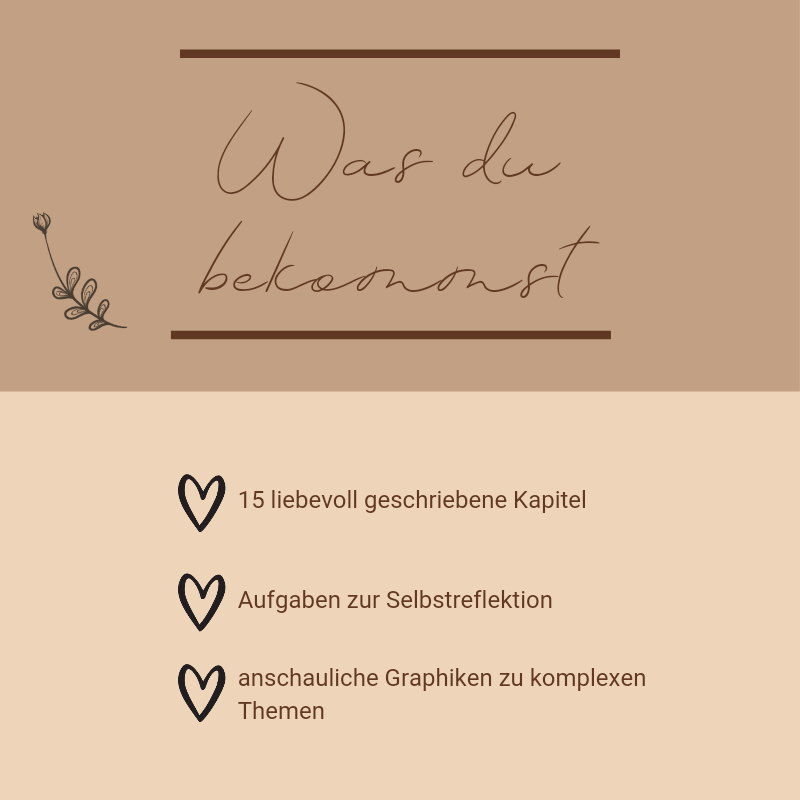 Du erhältst jeden Tag ein Kapitel des Ebooks kostenlos per Mail. Immer dabei die Aufgaben, die du für dich bearbeiten kannst.