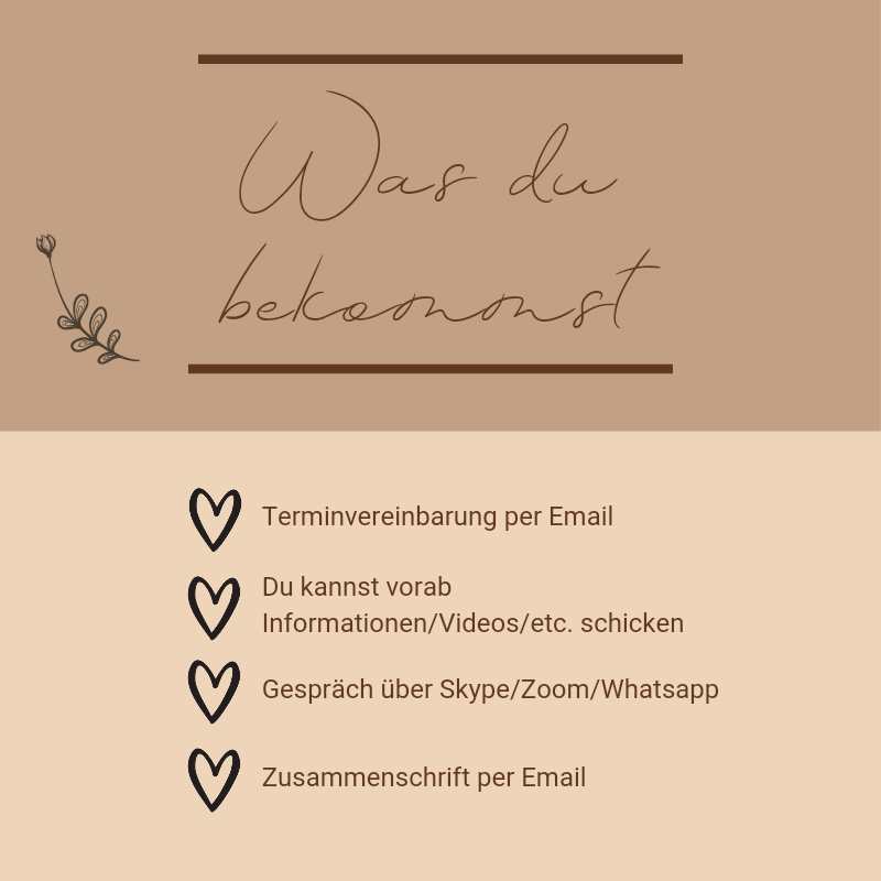 In einem 45- bis 90-minütigem Gespräche gehen wir auf die Probleme und Entwicklungspotenziale von dir und deinem Pferd ein. Zusammen besprechen wir alles, was dir am Herzen liegt und ich gebe dir praktische Tipps, die du dann zum Pferd mitnehmen kannst.