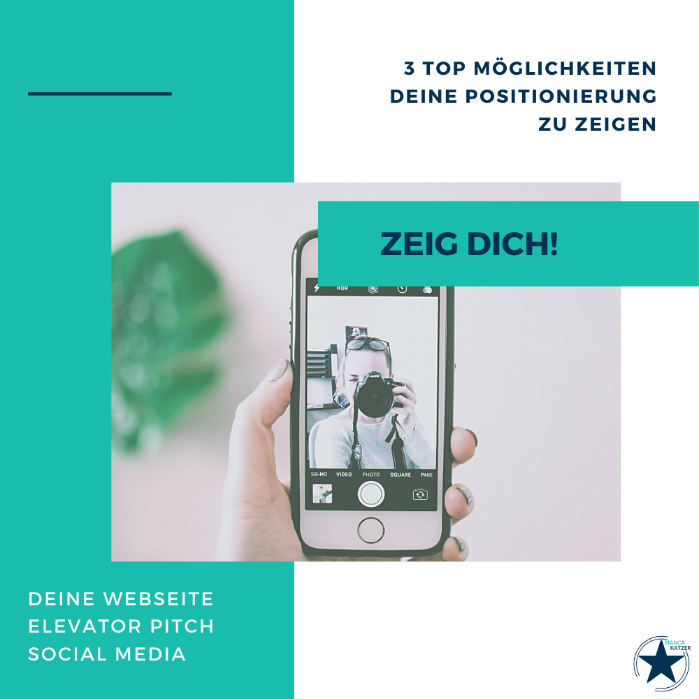 In dem Online Kurs “ZEIG DICH” lernst du, wie du deine Positionierung am besten rüber bringst. Nie wieder Grübeln, was auf der Start- oder der Über-Mich-Seite stehen sollte. Kein Zögern mehr, was du von dir in den diversen Social Media Kanälen zeigen oder was du posten solltest. Endlich kein betretenes Stammeln auf die Frage, was du beruflich machst. Du brauchst dich nicht mehr hinter Allerwelts-Begriffen oder Stock-Bildern verstecken, die jeder (deiner Konkurrenten) benutzt. Wenn du diesen Kurs jetzt machst, hast du einen großen Schritt in Richtung Klarheit und Power getan! Nimm noch heute deine Außenpräsenz unter die Lupe und schreib dir auf, was dir schon lange nicht mehr gefällt. Nach dem Kurs weißt du genau, wie du es endlich ändern kannst!