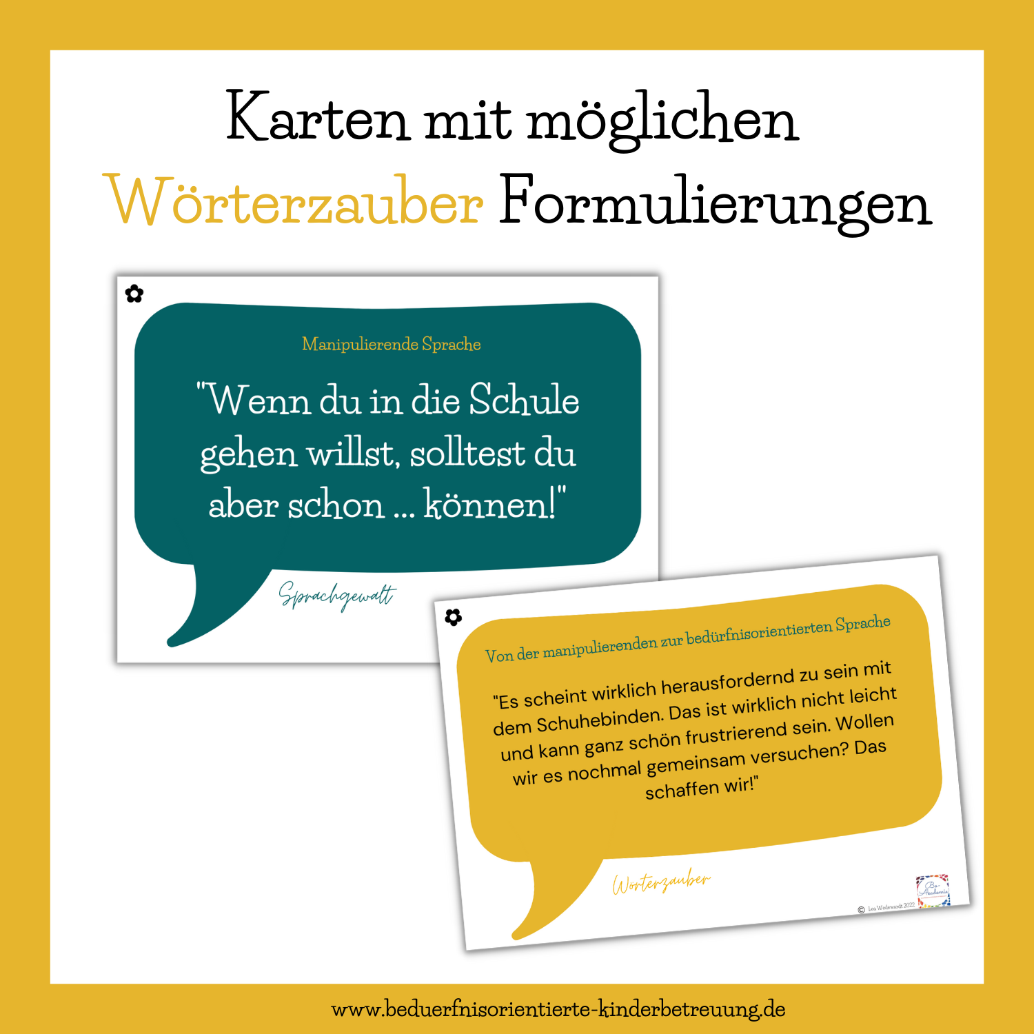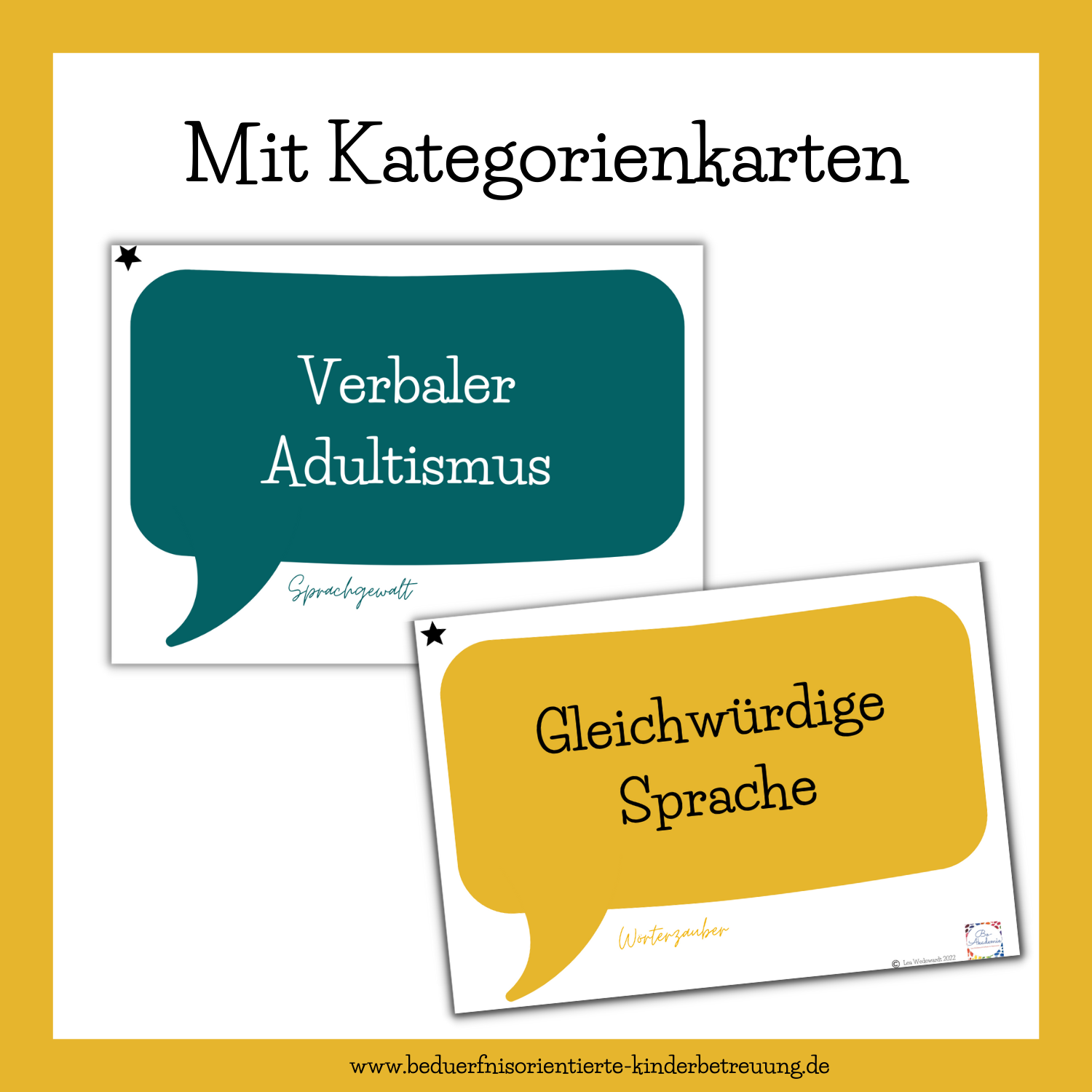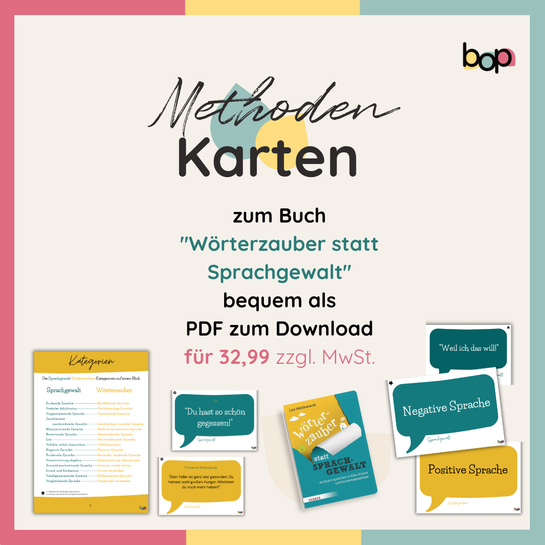 Passend zum Buch "Wörterzauber statt Sprachgewalt. Achtsam sprechen in Kita, Krippe und Kindertagespflege" von Lea Wedewardt gibt es nun ein Methodenkarten-Set als Download zum selber ausdrucken.