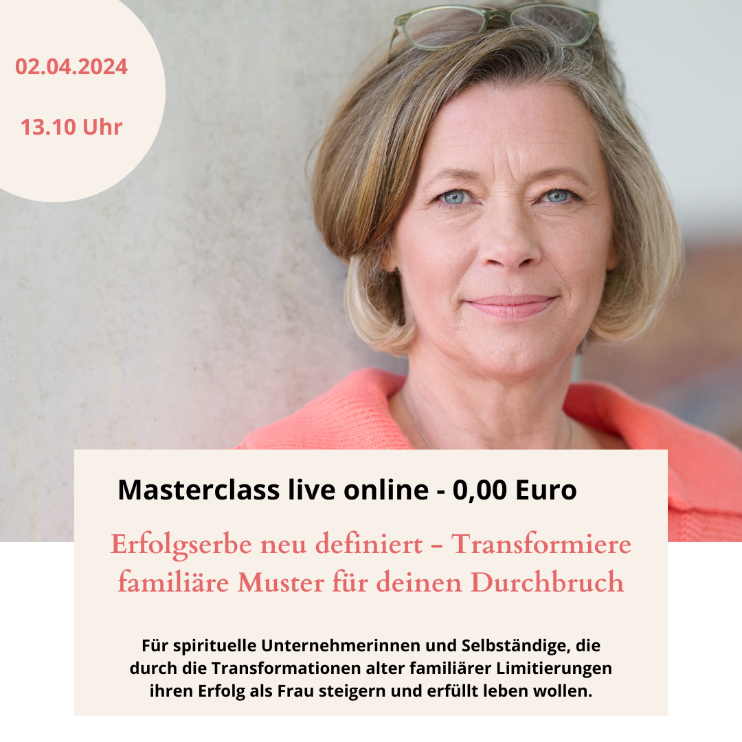 Du erfährst, welche Erfahrungen deiner Familie - vor allem die deiner weiblichen Ahninnen - Auswirkungen auf deinen Erfolg und Lebensglück nehmen. Bis du sie elegant und leichtfüßig transformierst - bevor dich das Leben energisch dazu auffordert.