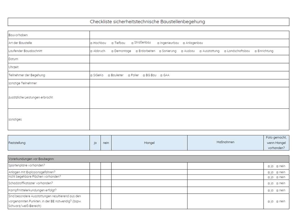 Checkliste für SiGeKo´s, Bauleiter, Poliere und Interessierte!