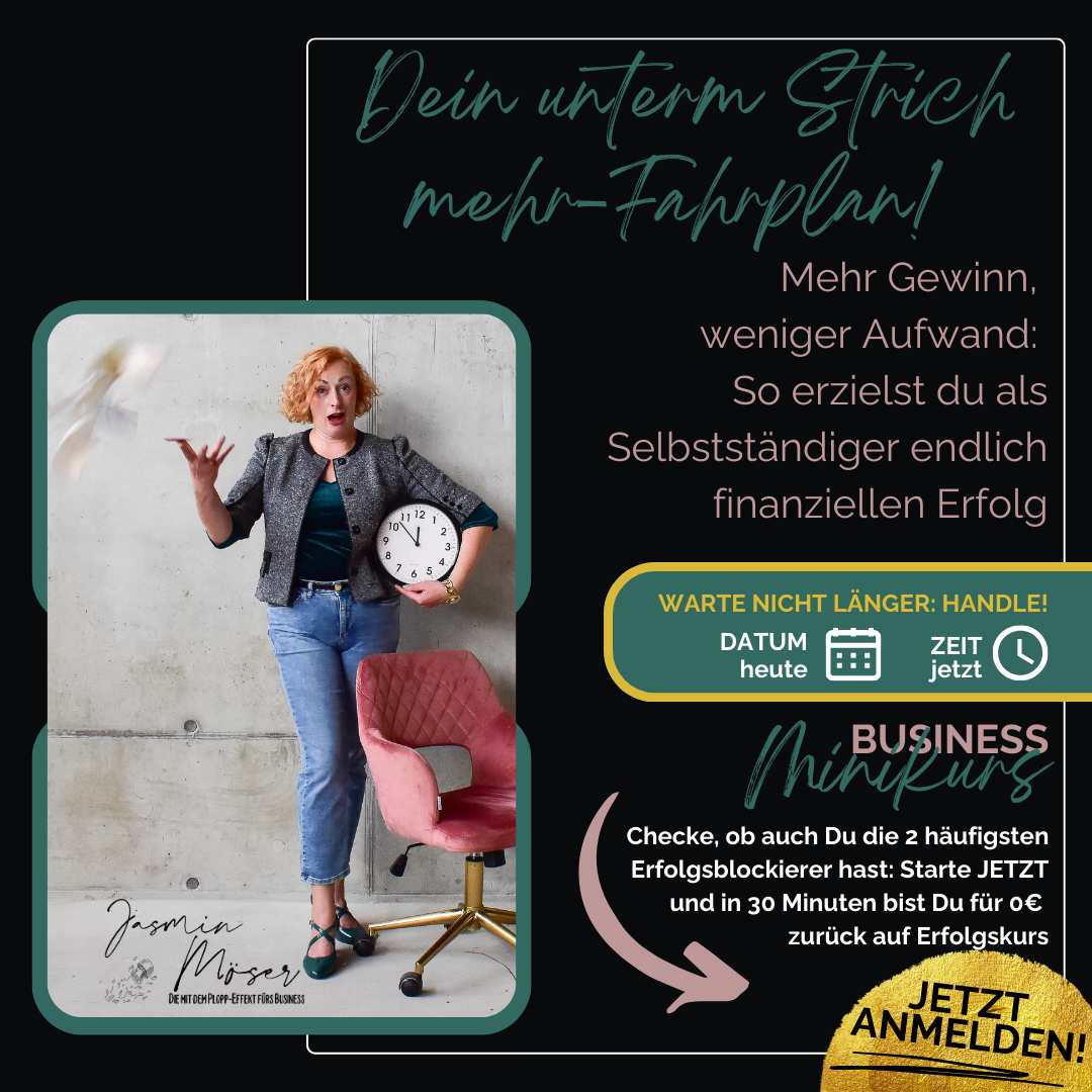 - in 30 Minuten kannst Du prüfen, ob auch Du die häufigsten Erfolgsverhinderer von Selbstständigen in Deinem Business hast