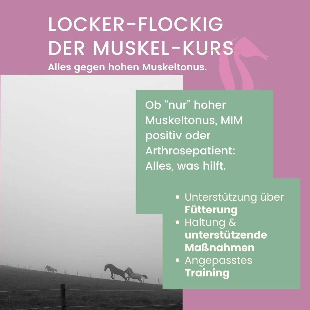 Und zum anderen trainiere ich Arthrosepferde sehr ähnlich, wie Pferde mit MIM oder hohem Muskeltonus. Zwar aus unterschiedlichen Gründen, aber das Ergebnis ist das gleiche. Warum: erzähl ich euch im Kurs!