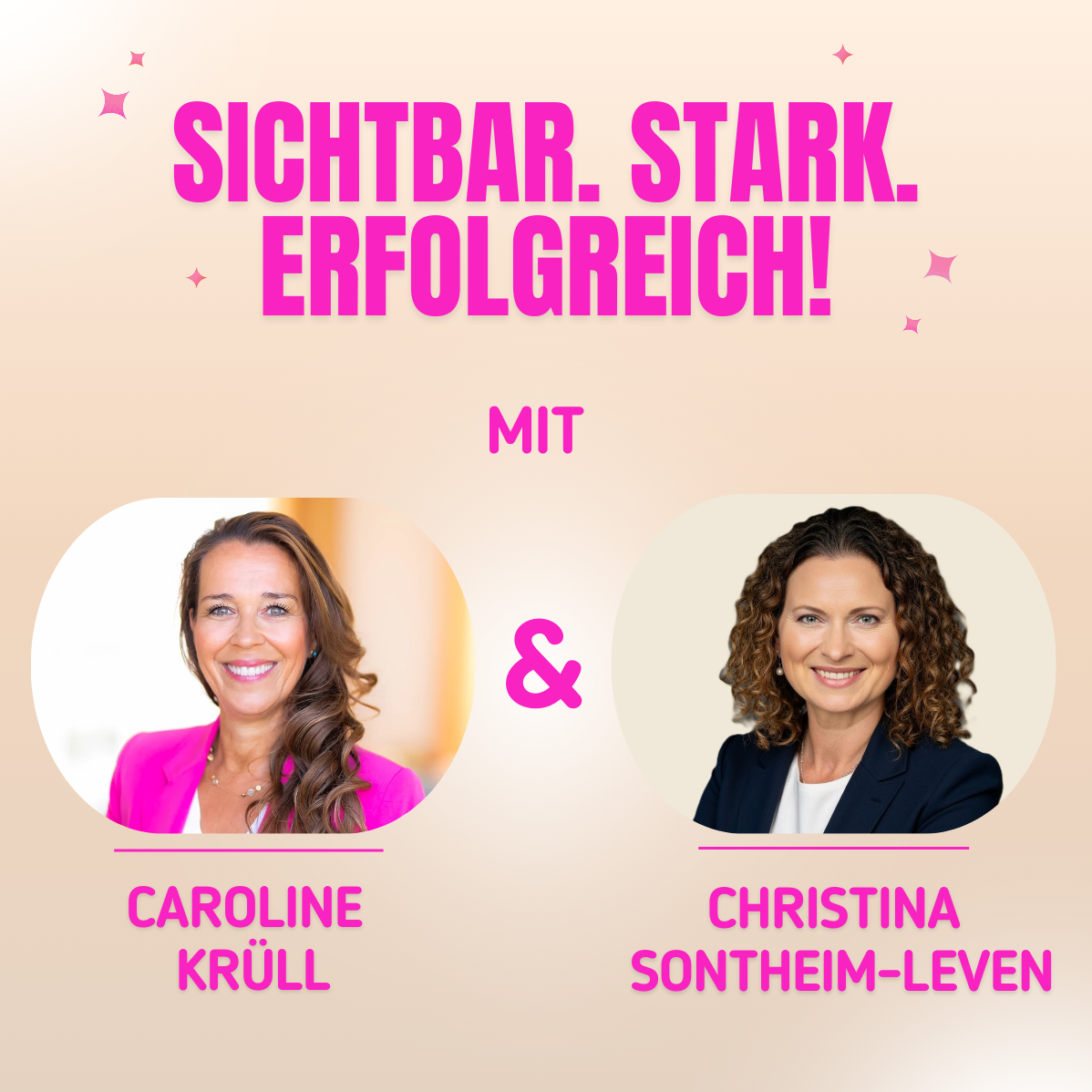 Eine der renommiertesten Persönlichkeits-Coaches im deutschsprachigen Raum – bekannt aus TV und Wirtschaft, geschätzt für ihre Fähigkeit, Menschen gezielt in ihre Strahlkraft zu bringen. An ihrer Seite: eine Top-Managerin mit über 20 Jahren Erfahrung in Vorständen und Aufsichtsräten – mit einem Blick hinter die Kulissen, den sonst nur wenige haben.