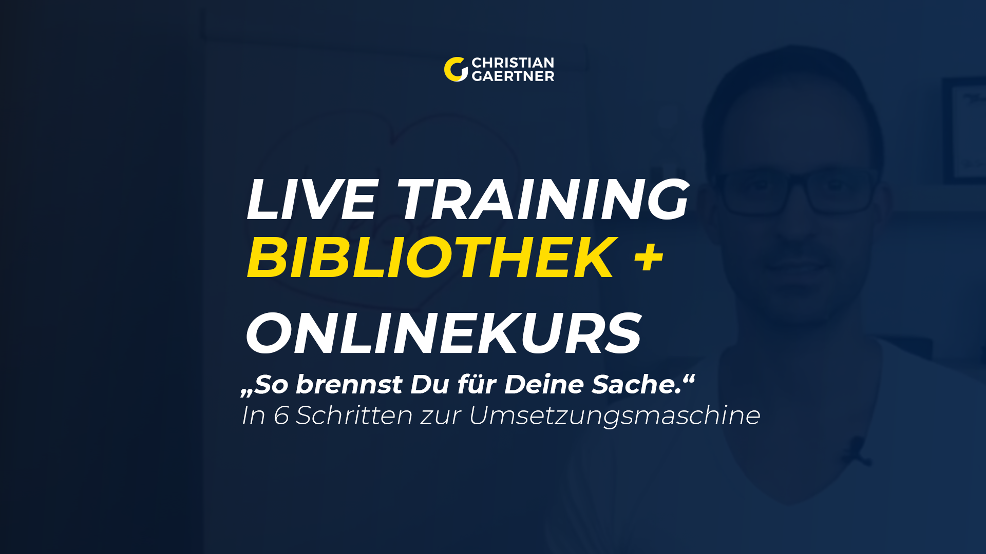 Hole Dir jetzt Deinen Zugang zu unserer umfassenden Live Training Bibliothek und dem Onlinekurs "So brennst Du für Deine Sache." .