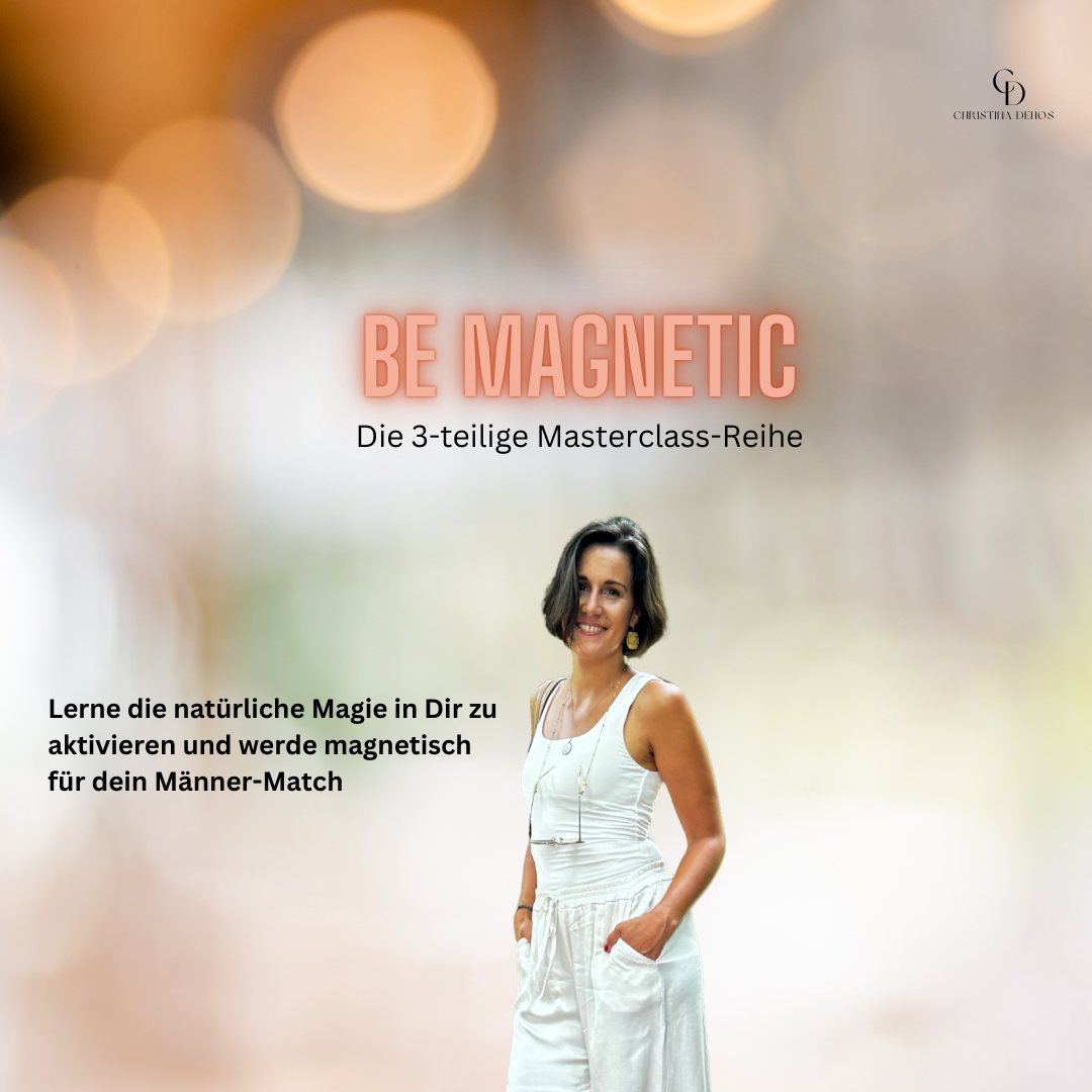 In meiner 3-teiligen-Masterclass "be magnetic" teile ich mit dir, wie ich das geschafft habe und wie du dieses Wissen auf dich, auf deine Rolle als Mama, aber eben auch auf deinen Datingkontext anwenden kannst