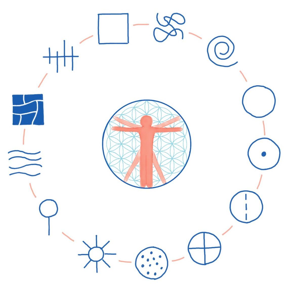 Übers Malen verbindest du dich mit deiner eigenen tiefen körperlichen Struktur, der Geometrie deines Lebens und Grundlage deiner Wahrnehmung und deinem wahren Sein. Ich verrate dir zudem, was es mit den Urformen des Malens auf sich hat und was diese mit der frühkindlichen Prägung des Gehirns zu tun haben.