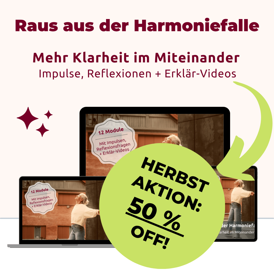 Jetzt das Training "Raus aus der Harmoniefalle - mehr Klarheit im Miteinander" zum Herbst-Aktionspreis sichern >>