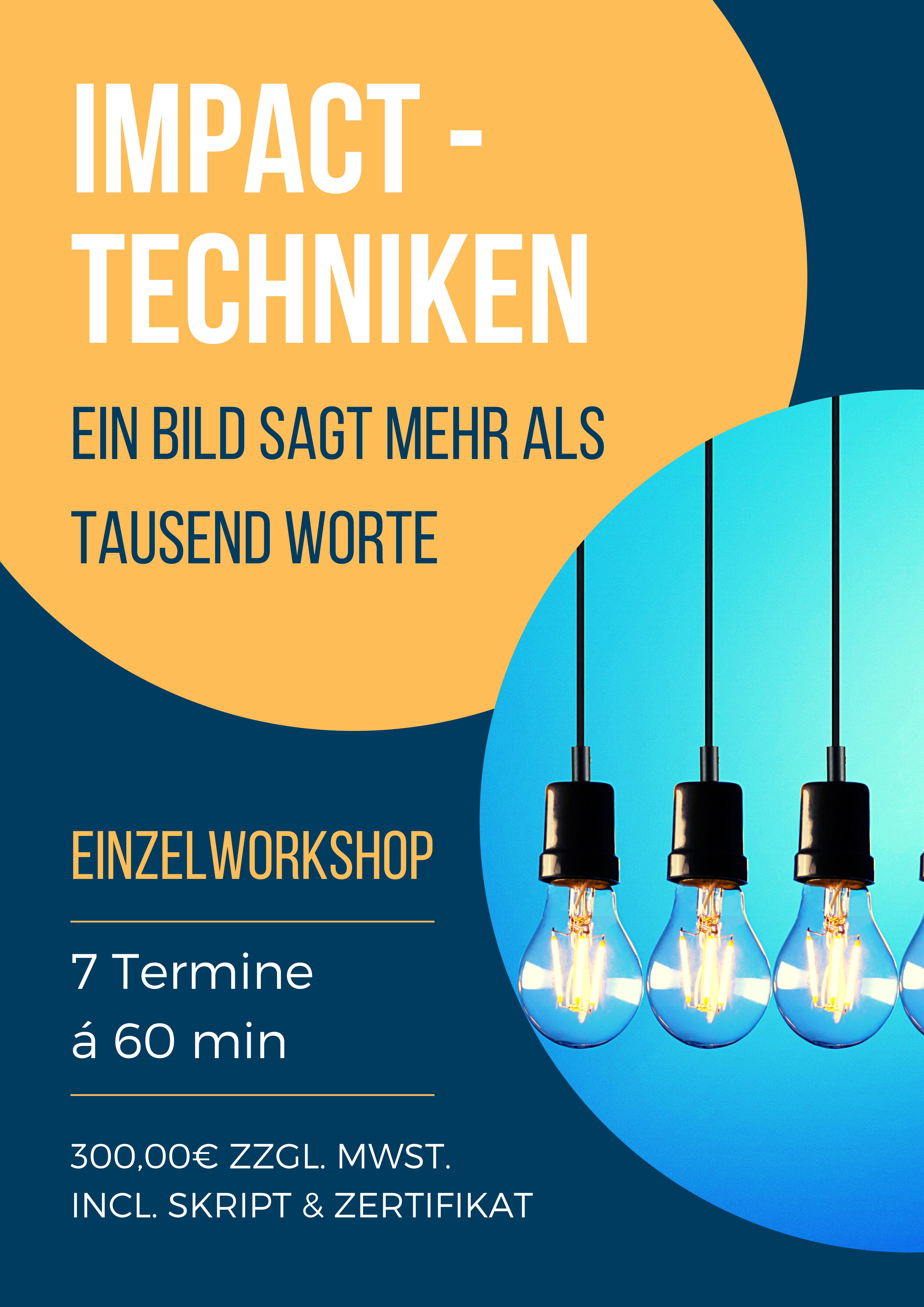 Im Workshop lernen Sie die verschiedenen Methoden der Impact- Arbeit kennen und probieren diese unmittelbar aus.