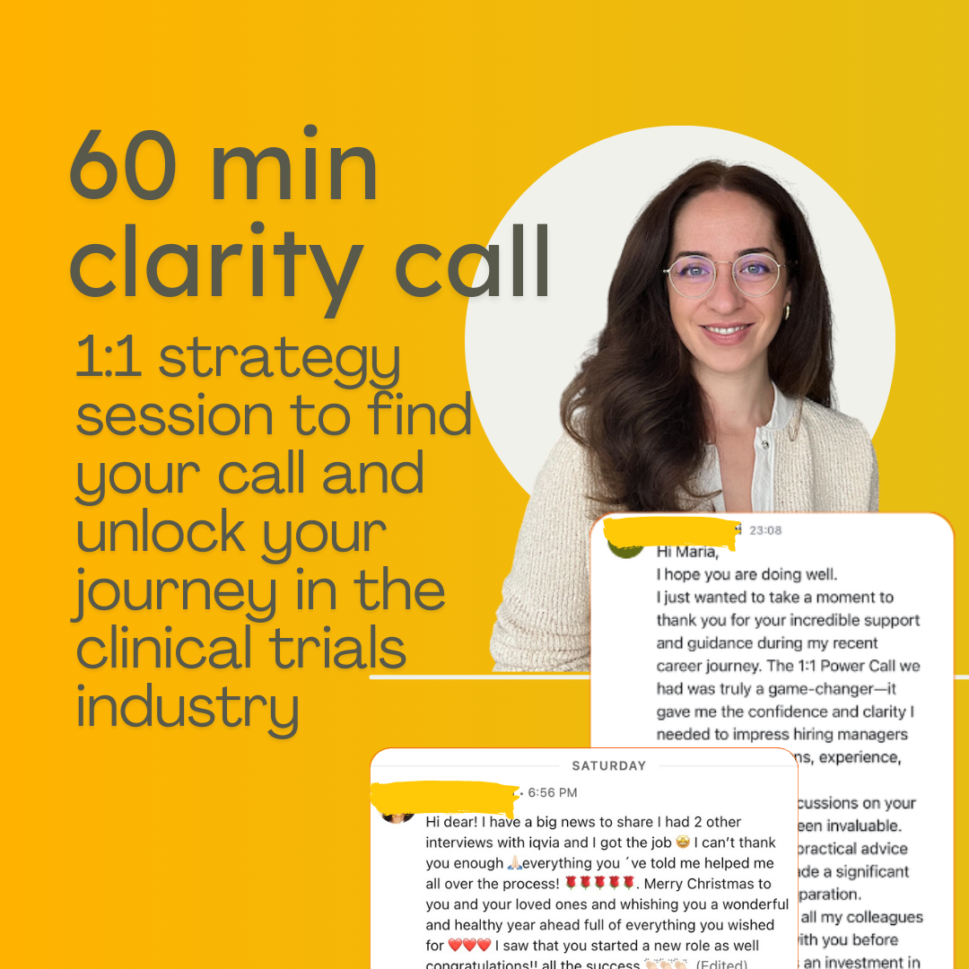 Book your 1-hour Clarity Call with me and learn EXACTLY how to kickstart your career in clinical research with confidence!