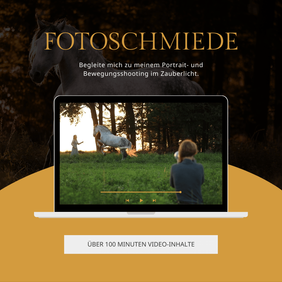 Dieser Kurs eignet sich sowohl für Einsteiger in die Pferdefotografie als auch für fortgeschrittene Fotografen, die ihr Repertoire und ihre Kenntnisse erweitern möchten und auf der Suche nach Inspiration für romantische, natürliche und magisch angehauchte Portrait- und Bewegungsbilder sind.
