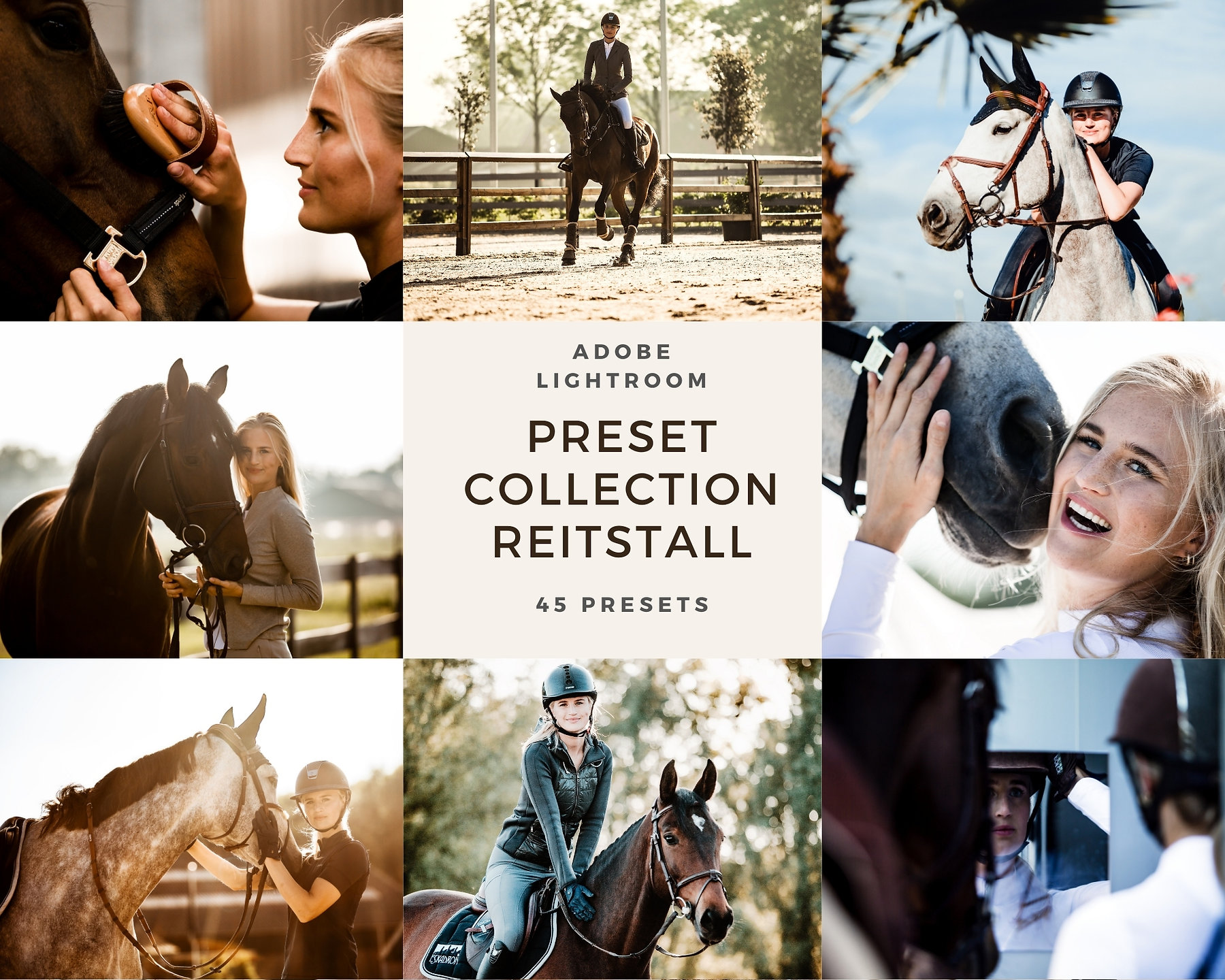 Verleihe deinen Pferdebildern mit nur einem Klick einen modernen, kontrastreichen Look. Dieses Bundle bietet Voreinstellungen für alle Situationen im Reitstall - vom Reitplatz bei praller Mittagssonne bis zur dunklen Reithalle.Mit diesem Collection erzielst du nicht nur beeindruckende Reitbilder, sondern betonst auch Details von Produkten und die besondere Lichtstimmung. Jedes Preset wurde sorgfältig für optimale Ergebnisse entwickelt und vereinfacht deine Bildbearbeitung erheblich.