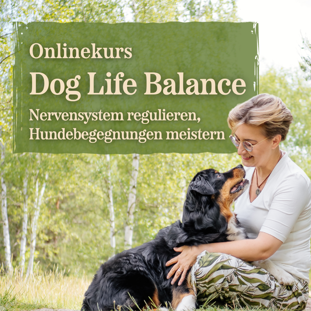 Mit dem Onlinekurs "Dog Life Balance" wirst du dein Nervensystem ganz genau kennenlernen, damit dir die (dysregulierten) Zustände deines Nervensystems schneller bewusst werden und du wieder in deine Selbstwirksamkeit und Resilienz an der Seite deines Hundes zurückfindest. Verbinde dich mit der Magie der Co-Regulation und erfahre, wie wertvoll diese in jedem Bereich deines Lebens ist.