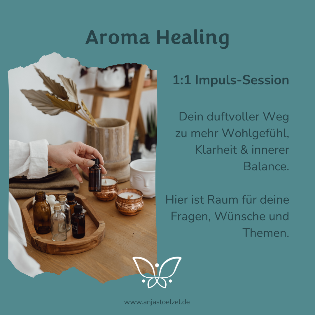 In dieser 60-minütigen Aroma Healing Session dreht sich alles um die Kraft der ätherischen Öle – individuell auf dich und deine aktuelle Lebenssituation abgestimmt.