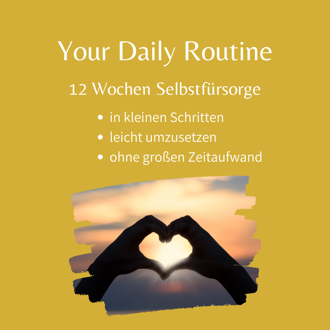 "Dranbleiben - Your Daily Routine !" ist mein 12-Wochenprogramm, in welchem du Selbstfürsorge in kleinen Schritten und mit minimalem Zeitaufwand für dich umsetzen kannst. Jede Woche bekommst du einen neuen Impuls und Motivationsschub, wie du Selbstfürsorge in deinem Alltag leben kannst.