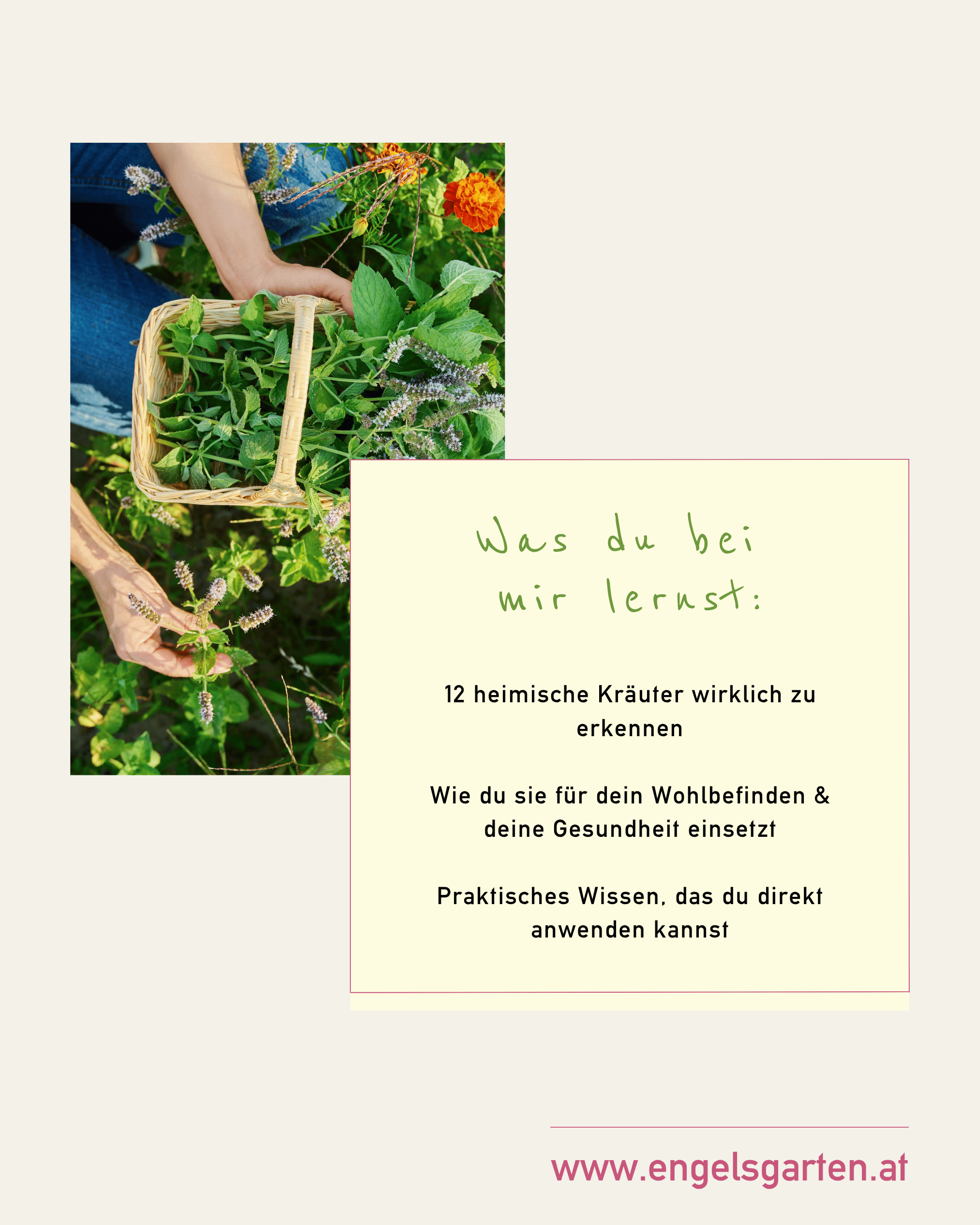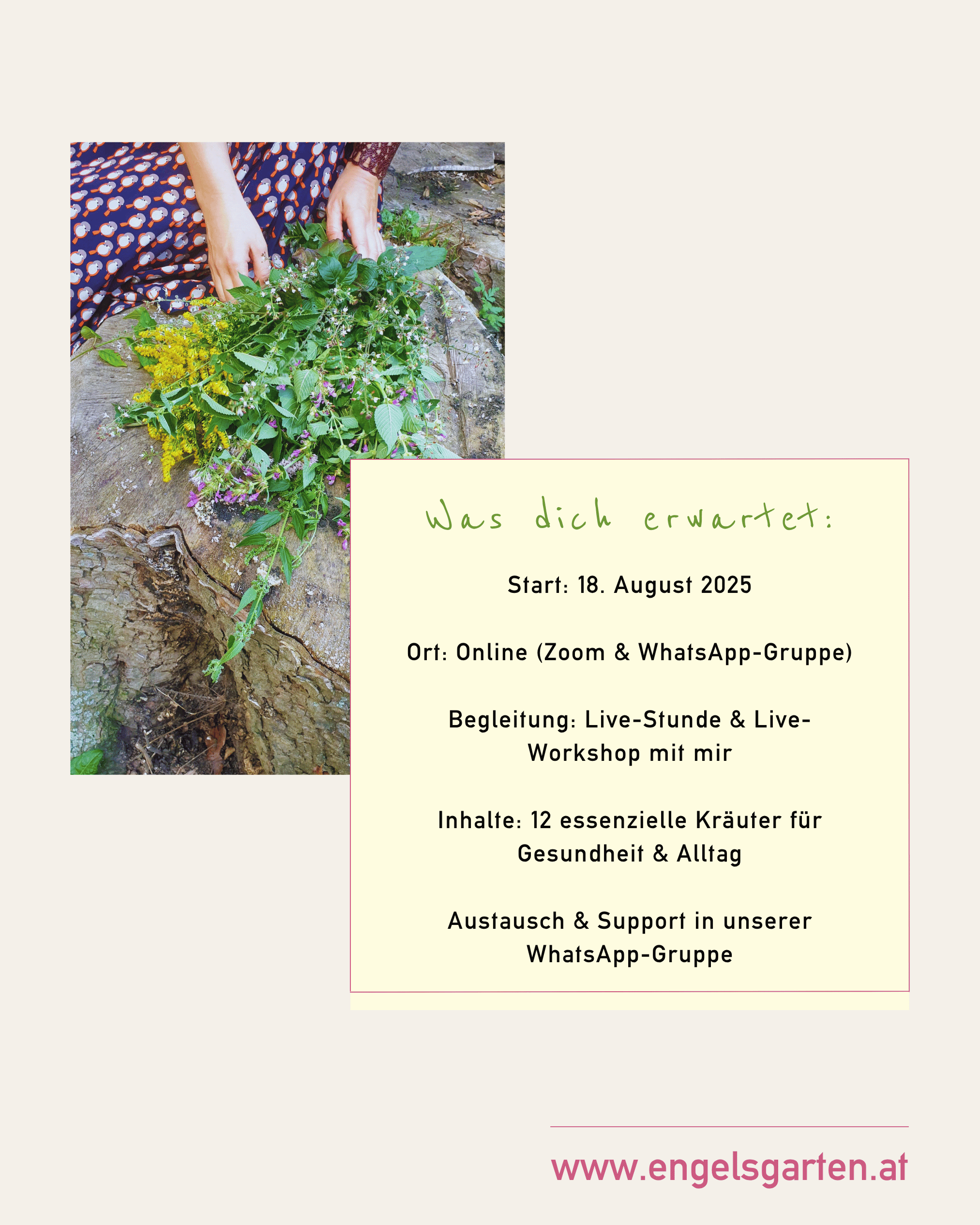 In diesem vierwöchigen Onlinekurs erhältst du Wissen über 12 Basiskräuter, die aktuell Saison haben, mit denen du mehr Wohlbefinden und Gesundheit in dein Leben bringst. Du erhältst praktische Tipps, wie du Kräuter ganz einfach in deinen Alltag integrierst: für einen energievollen Start in den Morgen, als Tee, Kräuterdrink usw.Für wen ist der Kurs?