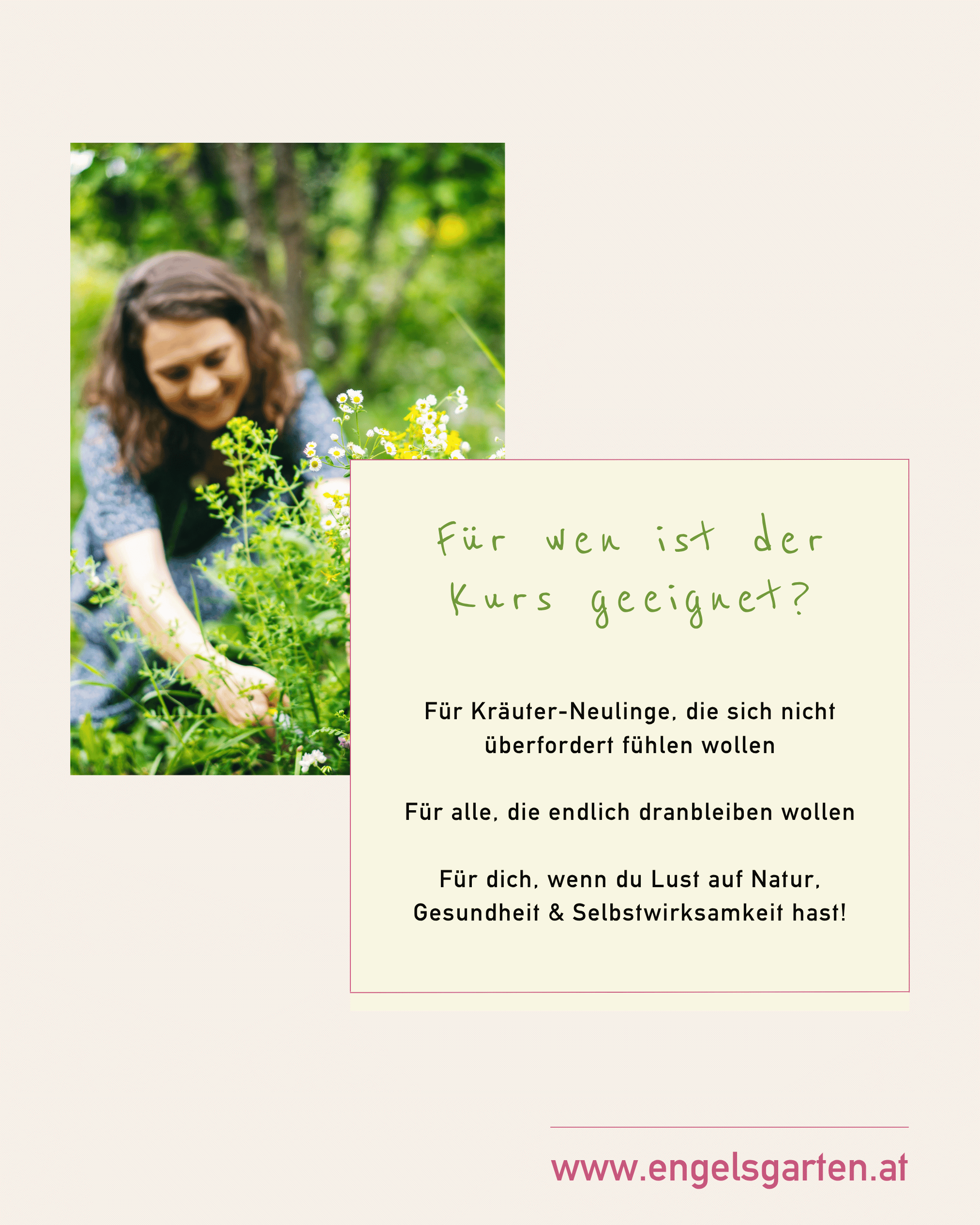 Daher wirst du direkt raus gehen und die Natur und die Kräuter kennenlernen, sammeln und nutzen.