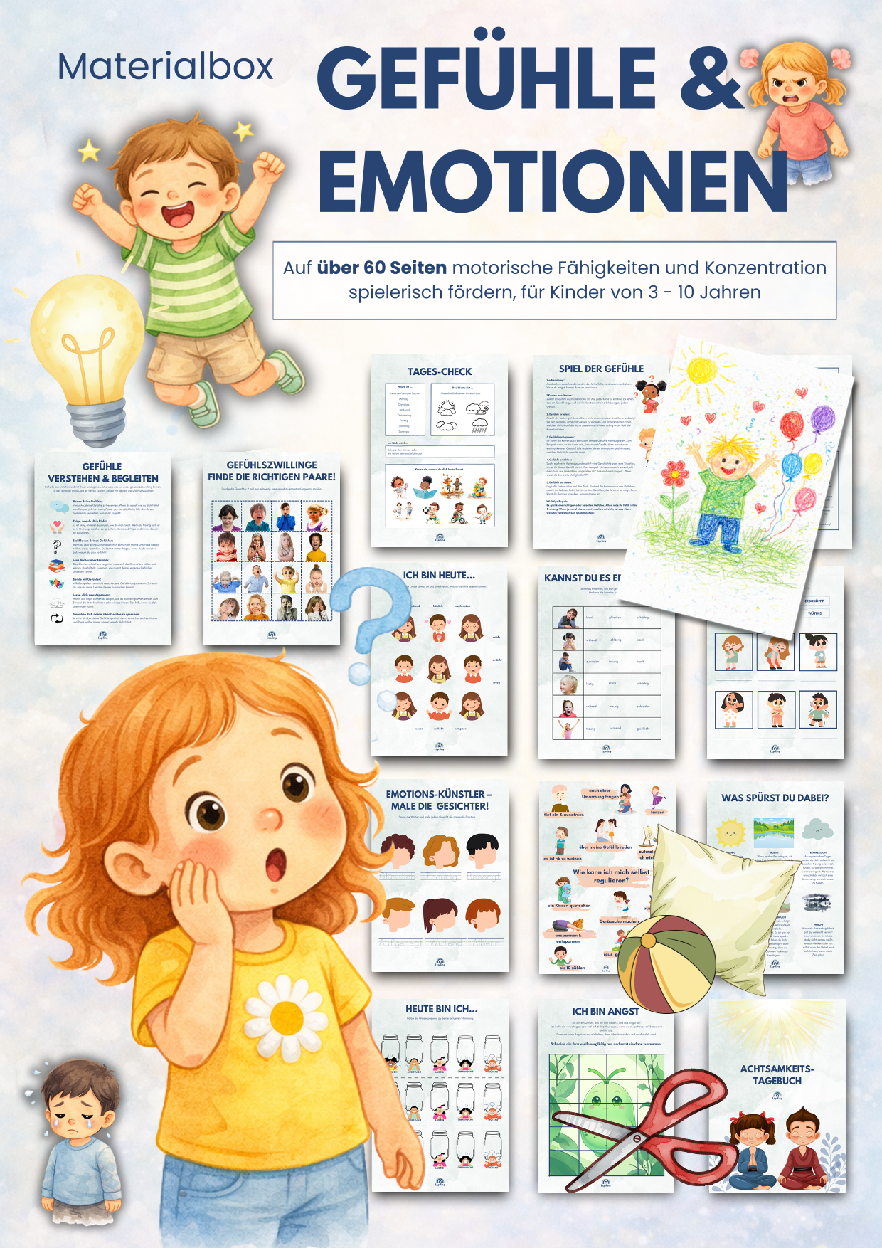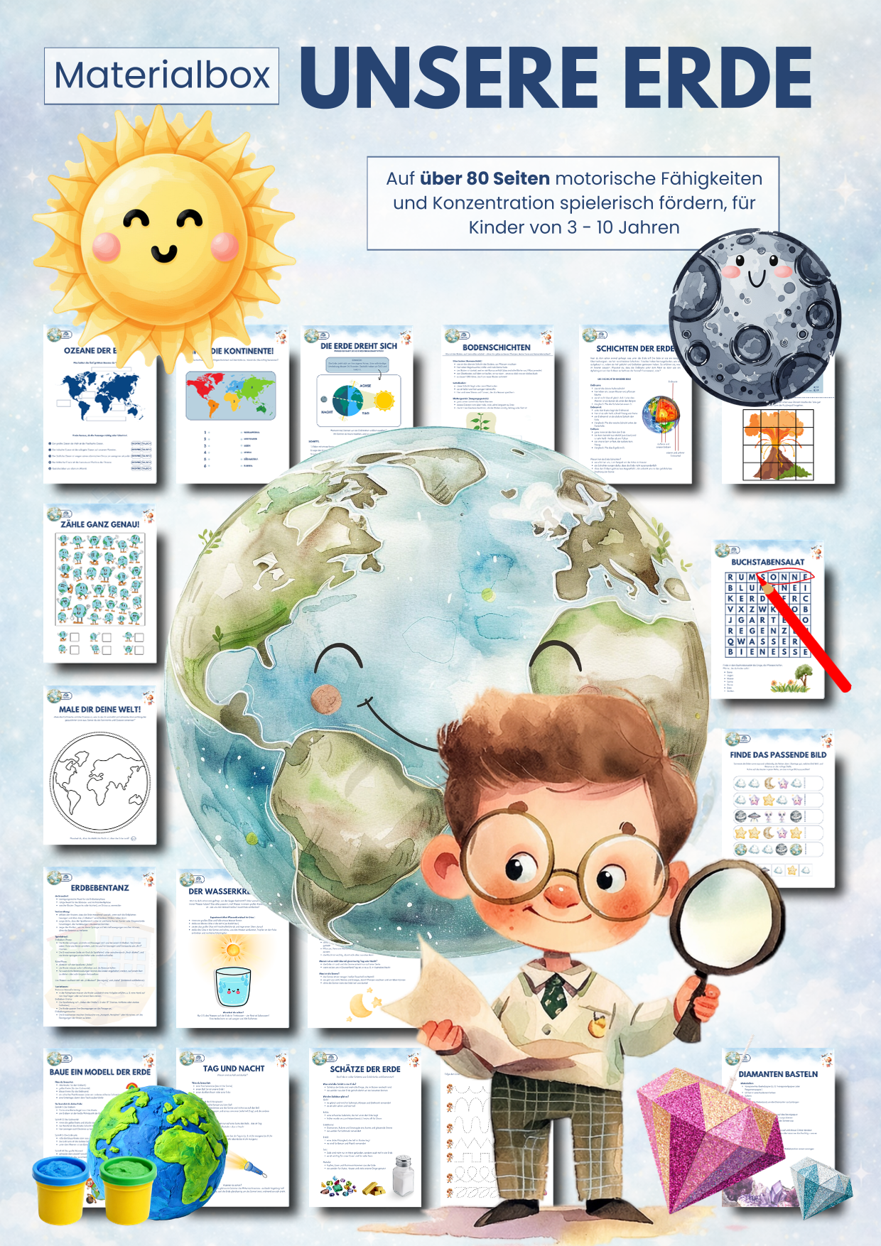 📦 Enthaltene Themenboxen: Frühling, Sommer, Herbst, Winter, Ostern, Unter Wasser, Weihnachten, Winter, Im Wald, Weltraum, Unsere Erde, Bauernhof, Gefühle & Emotionen