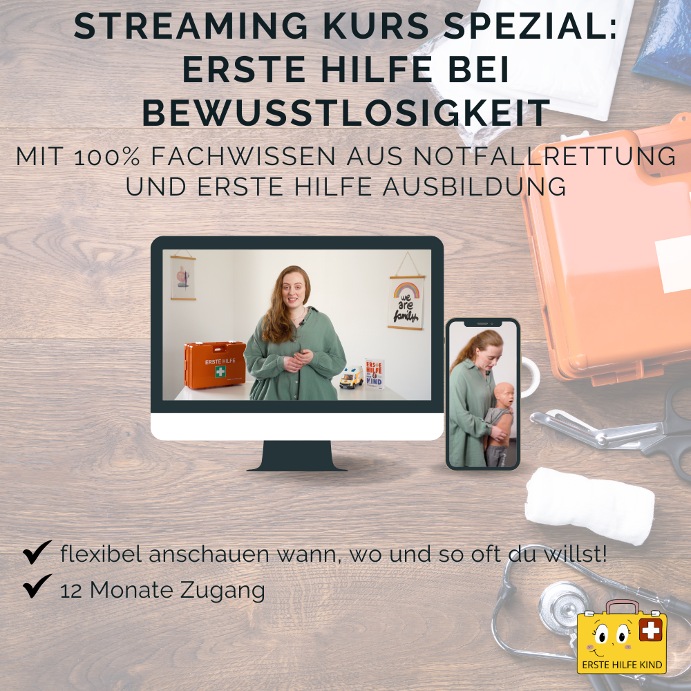 In meinem Erste Hilfe Kurs am Baby und Kind lernst du wie du deinem Kind im Notfall helfen kannst. Insbesondere die praktischen Maßnahmen zeige ich dir hier detailliert zum Nachmachen und Lernen! Durch das praktische Üben der Inhalte bleiben die Maßnahmen noch besser in deinem Kopf und sind im Notfall abrufbar!
