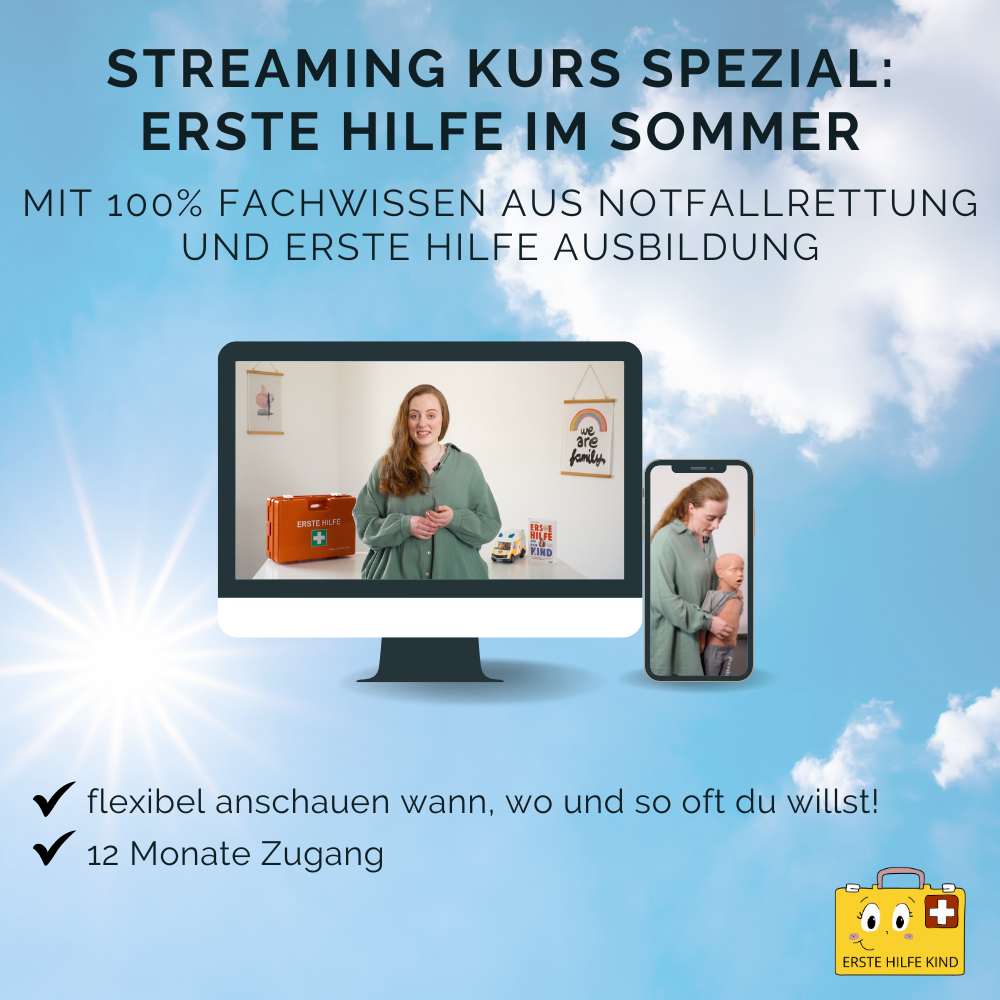 In meinem Erste Hilfe Kurs am Baby und Kind lernst du wie du deinem Kind im Notfall helfen kannst. Insbesondere die praktischen Maßnahmen zeige ich dir hier detailliert zum Nachmachen und Lernen! Durch das praktische Üben der Inhalte bleiben die Maßnahmen noch besser in deinem Kopf und sind im Notfall abrufbar!