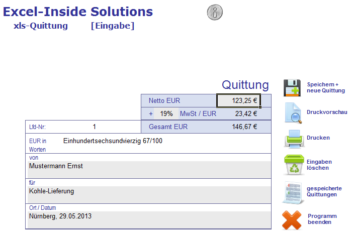 Mit Hilfe des Excel-Tools xls-Quittung lassen sich schnell und einfach Quittungen