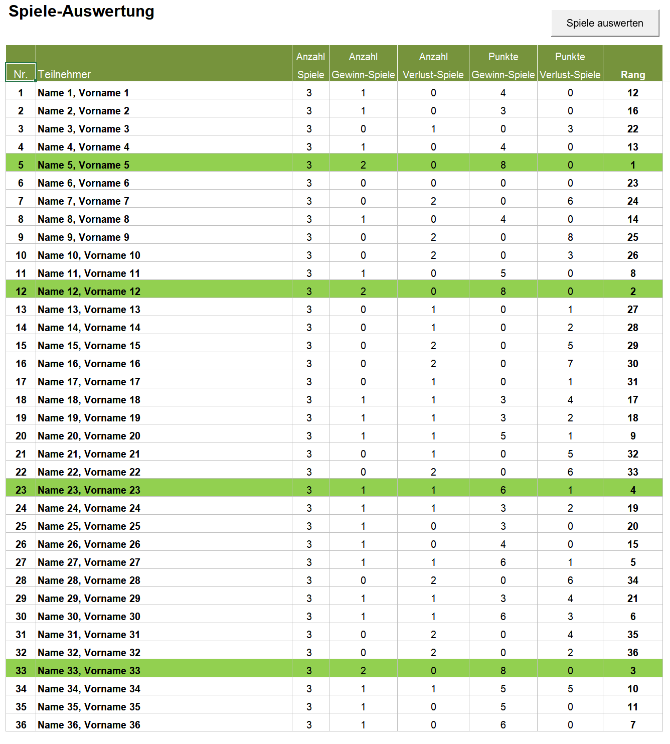 erzeugt und der Rang aller Spieler automatisch ermittelt.