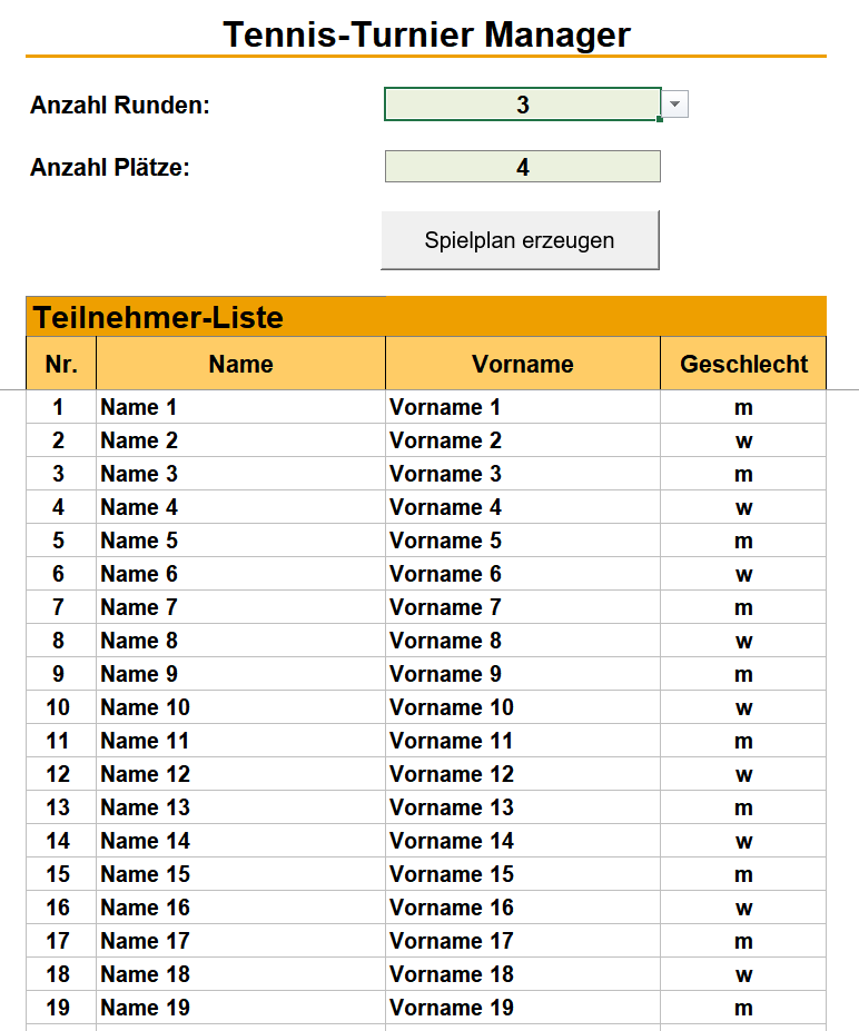 In die Teilnehmerliste werden die Namen der Teilnehmer sowie deren Geschlelcht eingetragen.