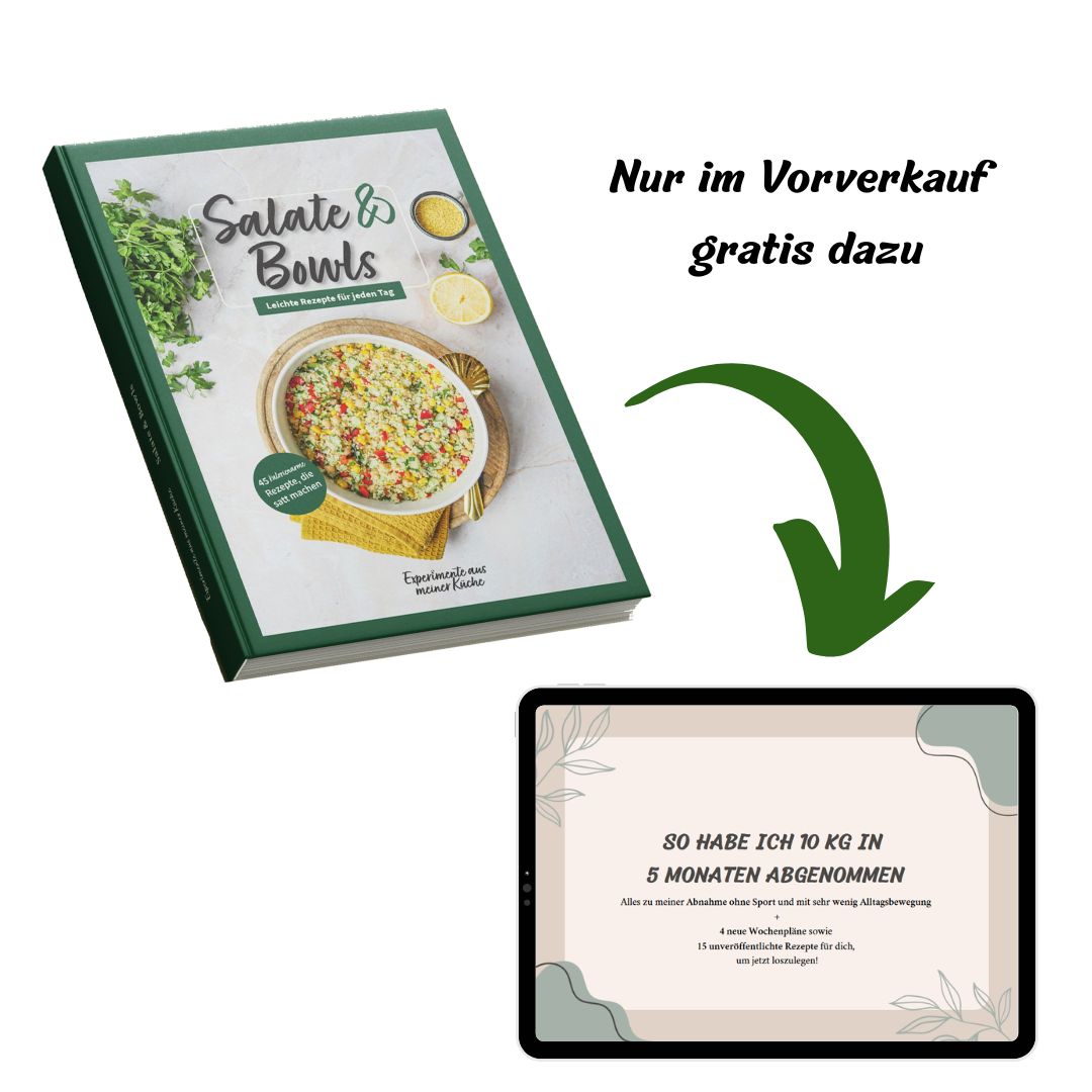 In „Salate & Bowls – Leichte Rezepte für jeden Tag“ zeige ich dir, wie vielseitig, kreativ und vor allem sättigend Salate und Bowls wirklich sein können. Hier geht es nicht um ein paar Blätter mit Dressing – sondern um vollwertige Mahlzeiten, die dich lange satt machen und perfekt in deinen Alltag passen.