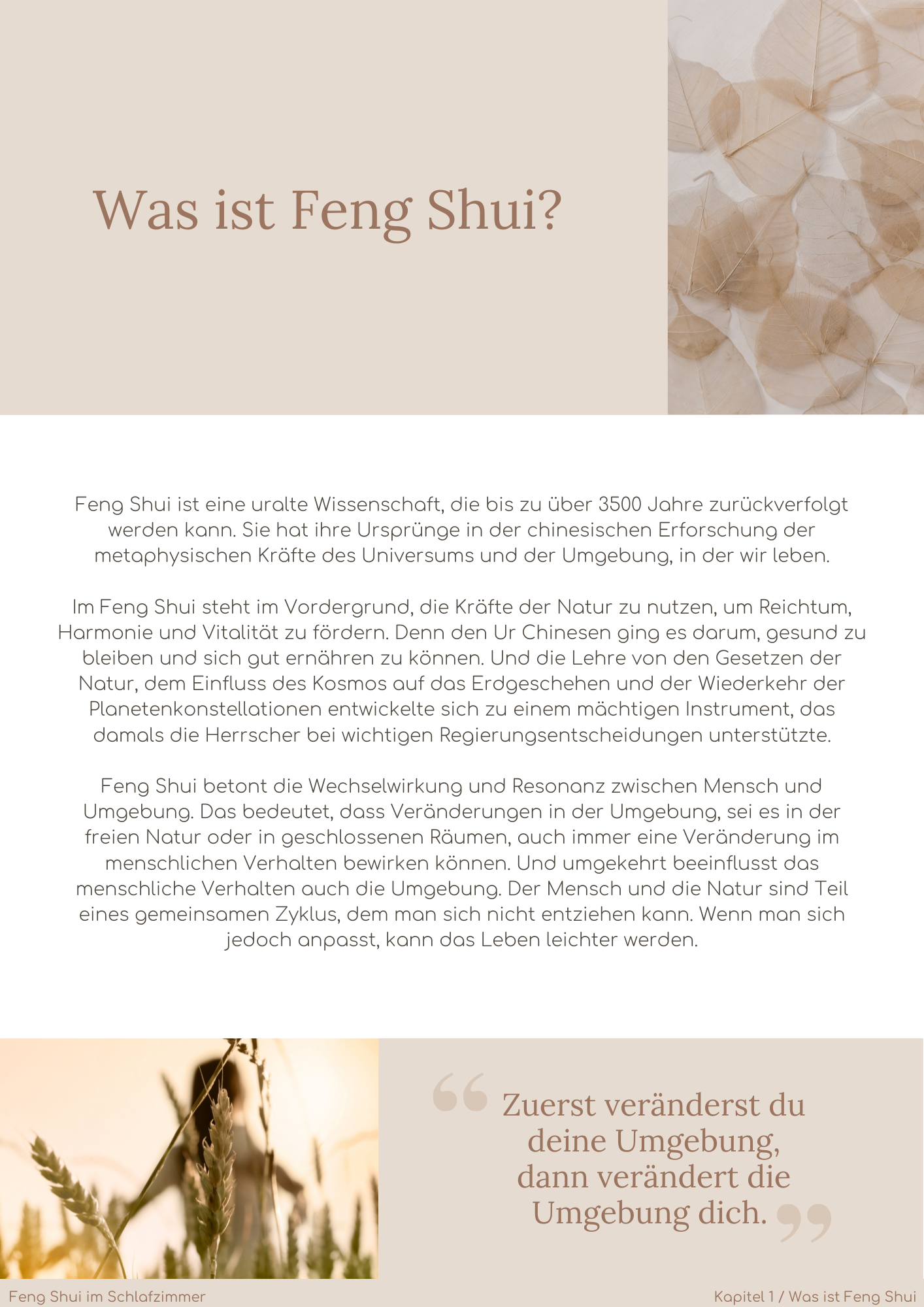 Verwandle dein Schlafzimmer in einen Ort für Ruhe, tiefen Schlaf & neue Energie mit komplettem Feng Shui Berater Wissen in einem E-Book.