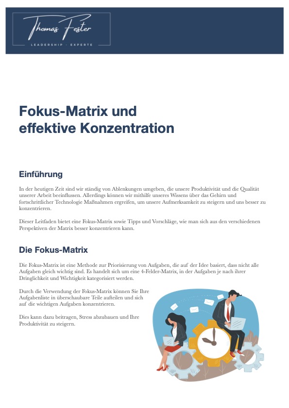 Willkommen zum Leitfaden "Fokus-Matrix und effektive Konzentration!"