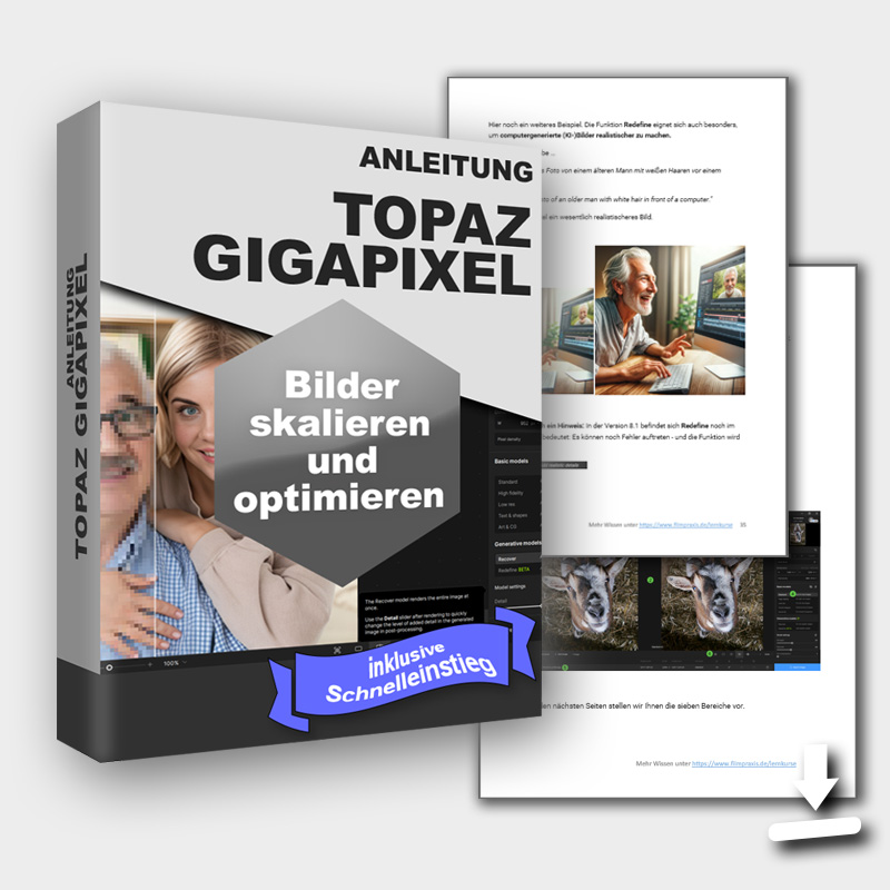 In dieser Praxisanleitung lernen Sie die wichtigsten Schritte zur Nutzung von Topaz Gigapixel – bewusst kompakt erklärt auf nur 50 Seiten. Damit erzielen Sie sofort Erfolge.