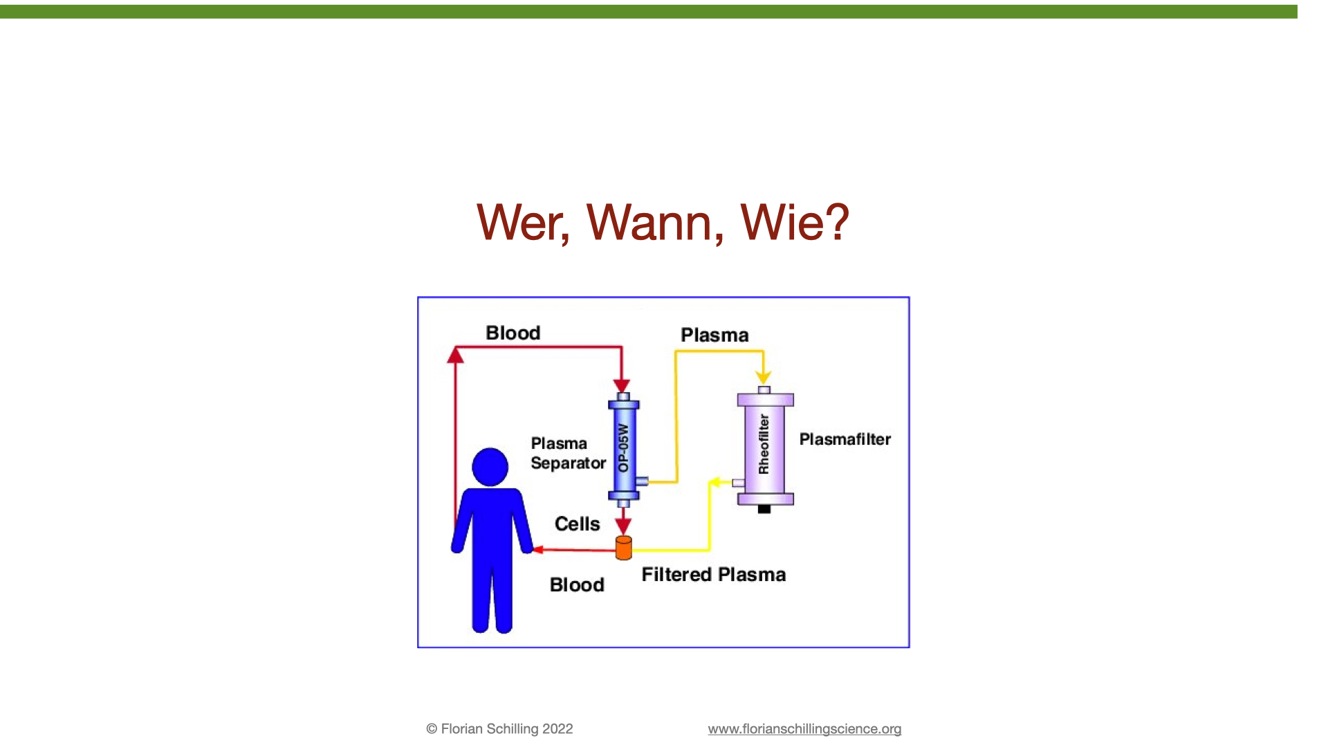 Welche Indikationen können mittels Plasmapherese behandelt werden, für wen kommt sie in Frage? Konkret werden wir uns Long-Covid, Post-Vac und dem Thema Entgiftung widmen.