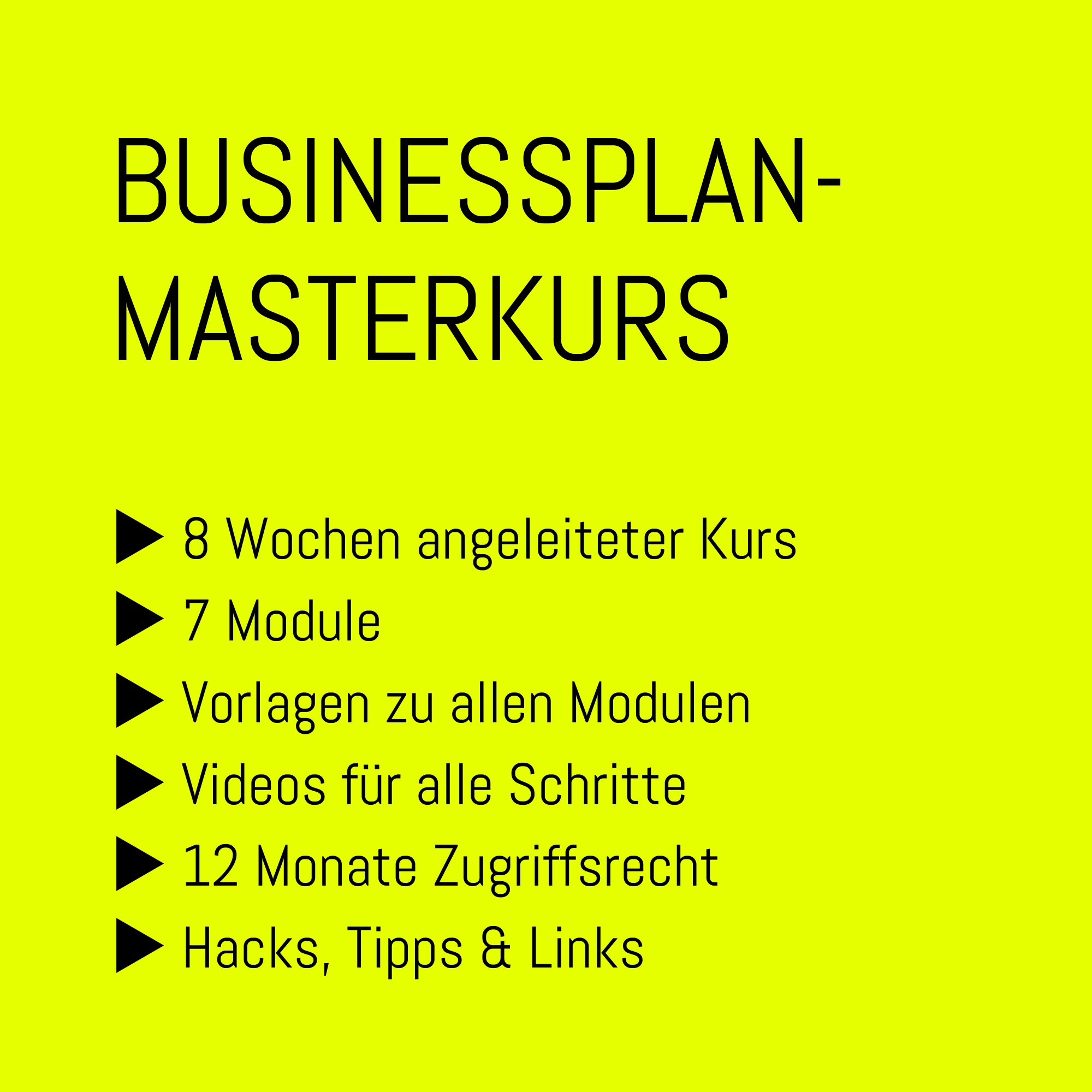 In einzelnen Modulen gehen wir gemeinsam Schritt für Schritt durch alle Bereiche deines Businessplans.