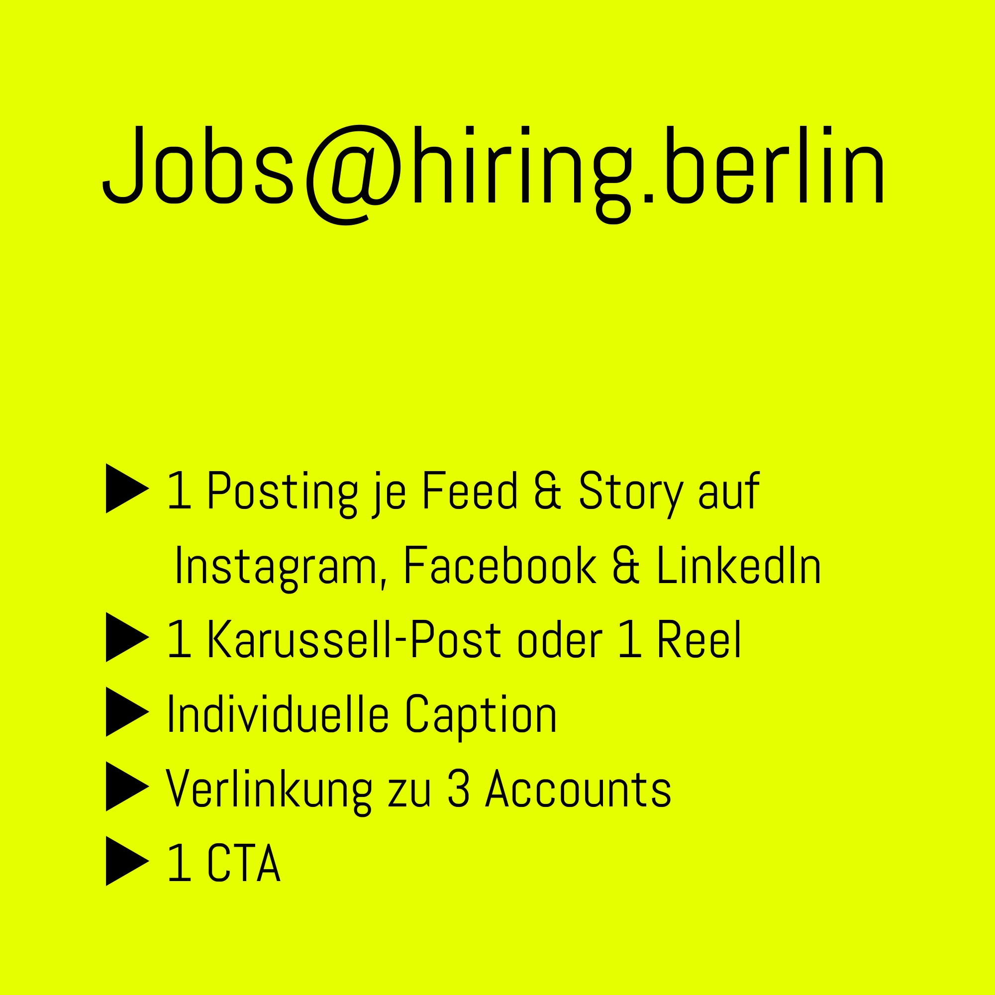 ▶︎ 1 Post auf den Social-Media-Kanälen von hiring.berlin (Instagram, Facebook, LinkedIn).