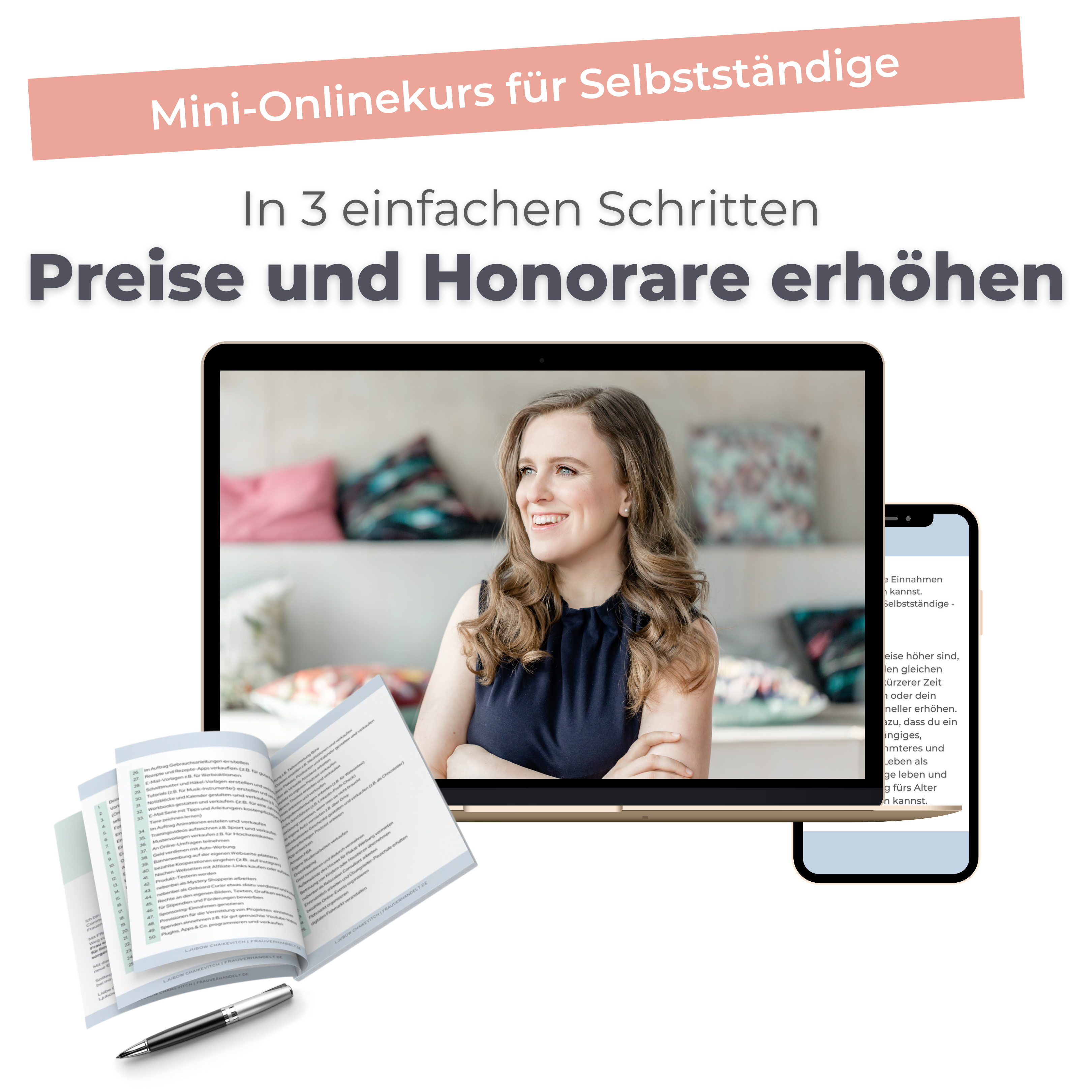 ✅ einen Videokurs, in dem ich dir die Strategie erkläre und dir aufzeige, welche Fehler du bei der Preiserhöhung vermeiden solltest.In nur einer Stunde lernst du, wie du bei der Preiserhöhung vorgehen kannst und hast alles zur Hand, was du dafür brauchst.