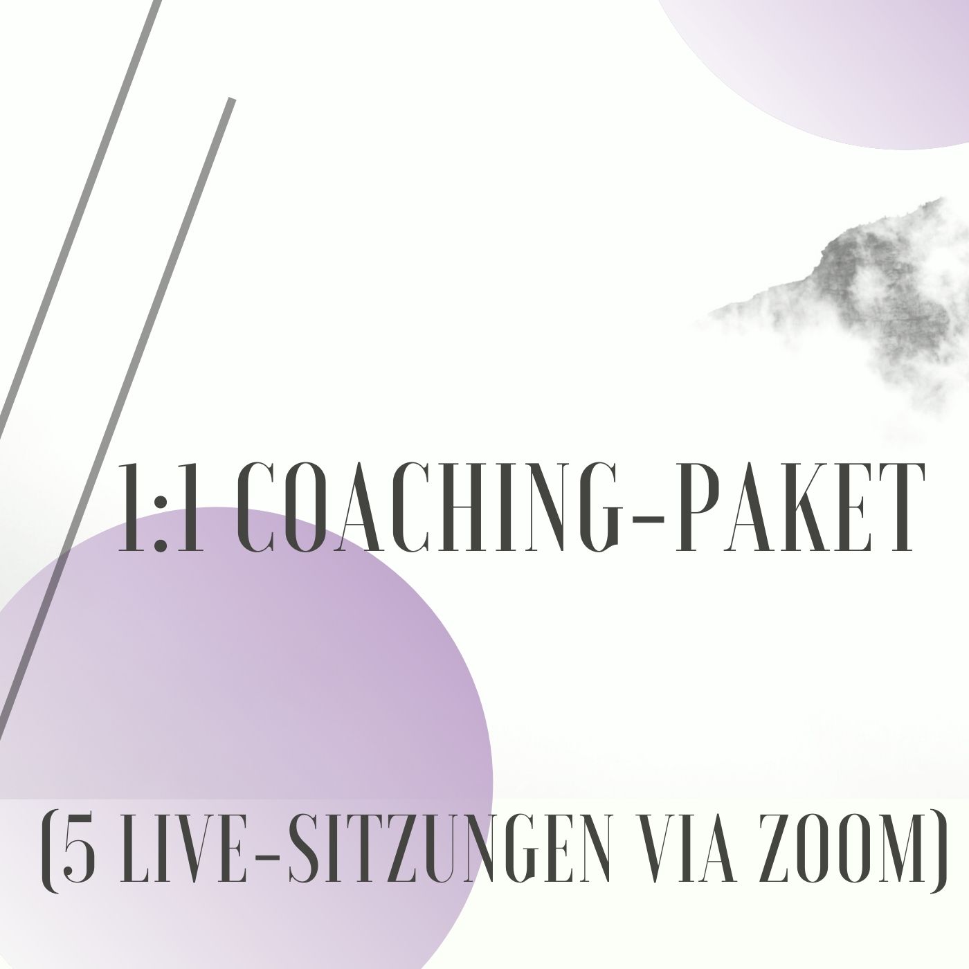 Du kannst hier direkt Dein Paket für 5 Live 1:1 Coaching-Sessions via Zoom mit mir buchen. Du erhältst fünf 90-minütige Live-Coaching-Sitzungen mit mir zum Preis von vier.