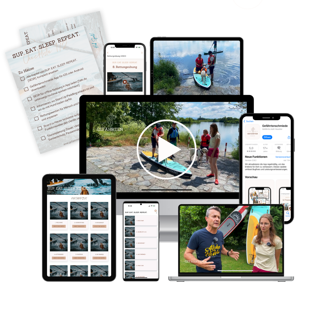 Außerdem erhältst du eine Checkliste zum Ausdrucken und Mitnehmen als schnellen Spickzettel zwischendurch. Du möchtest gerne am See nochmal schnell in ein Video reinschauen? Klar! Alle Inhalte stehen offline in der begleitenden App jederzeit für dich bereit.