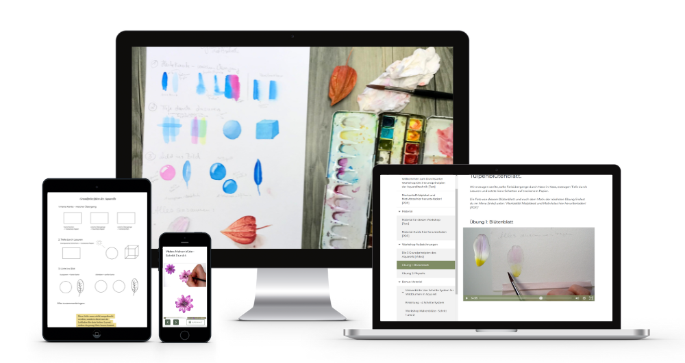 Dieser Workshop ist praxisnah und pragmatisch - meine 20 Jahre Aquarellerfahrung und 6 Jahre als Onlinedozentin in 2 Stunden Videomaterial
