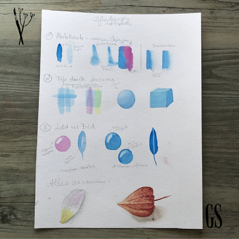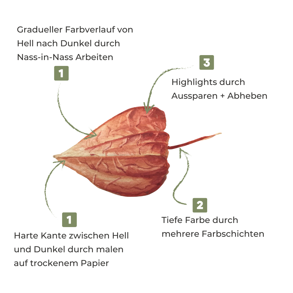 Dann bringen wir die gelernten Prinzipien zusammen und malen ein kleines botanisches Motiv.