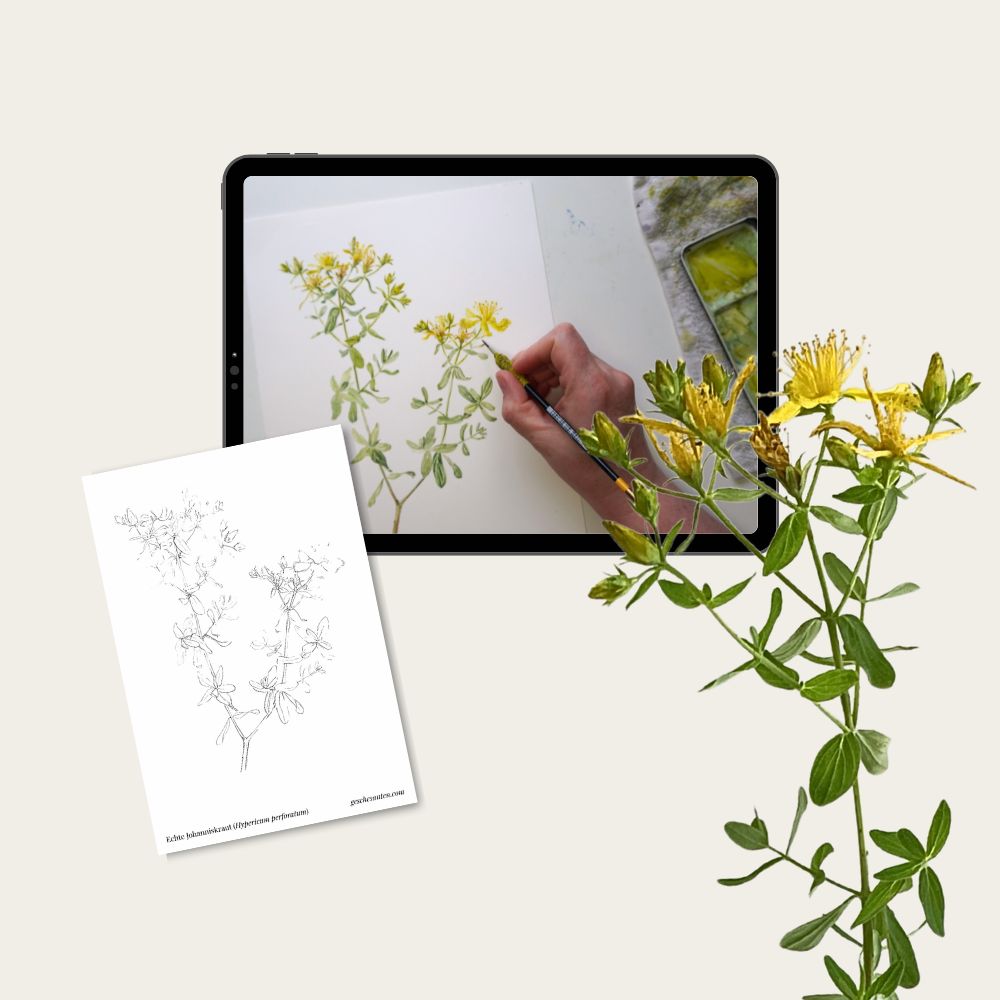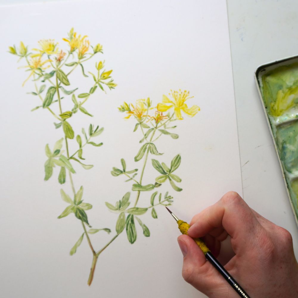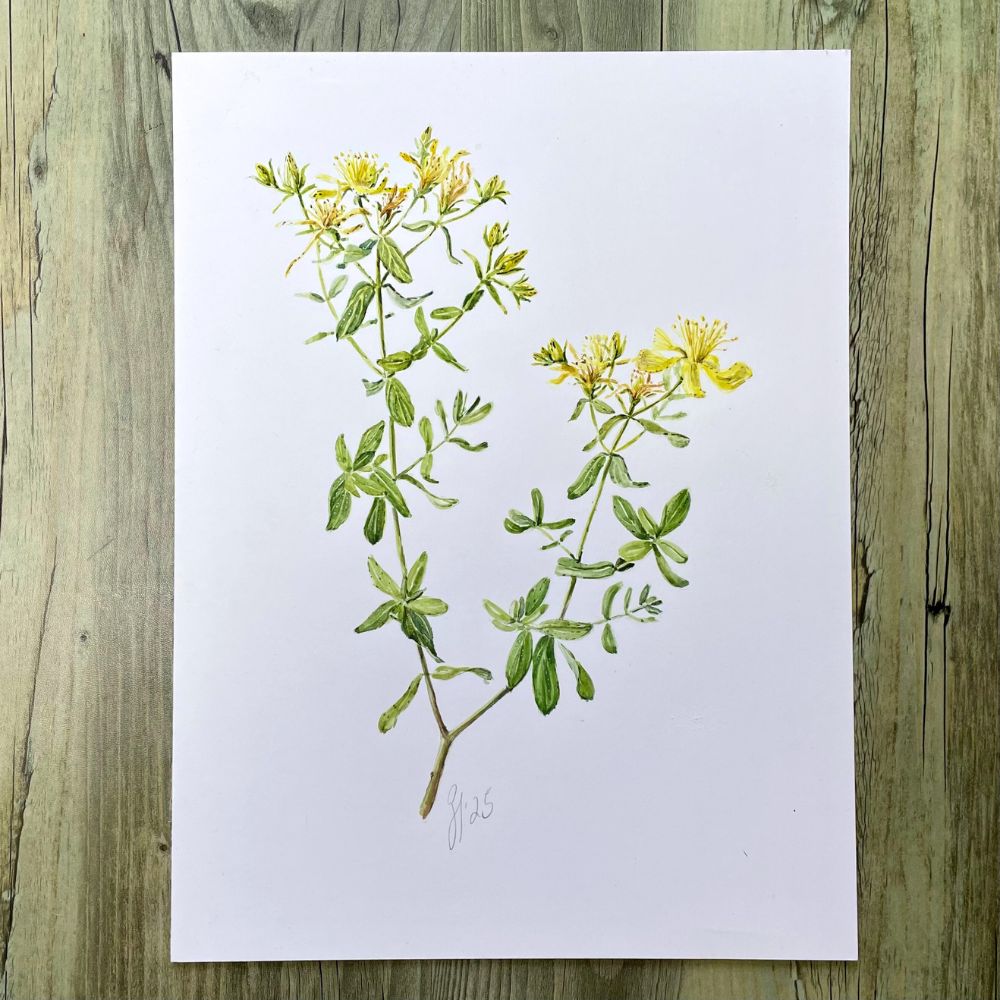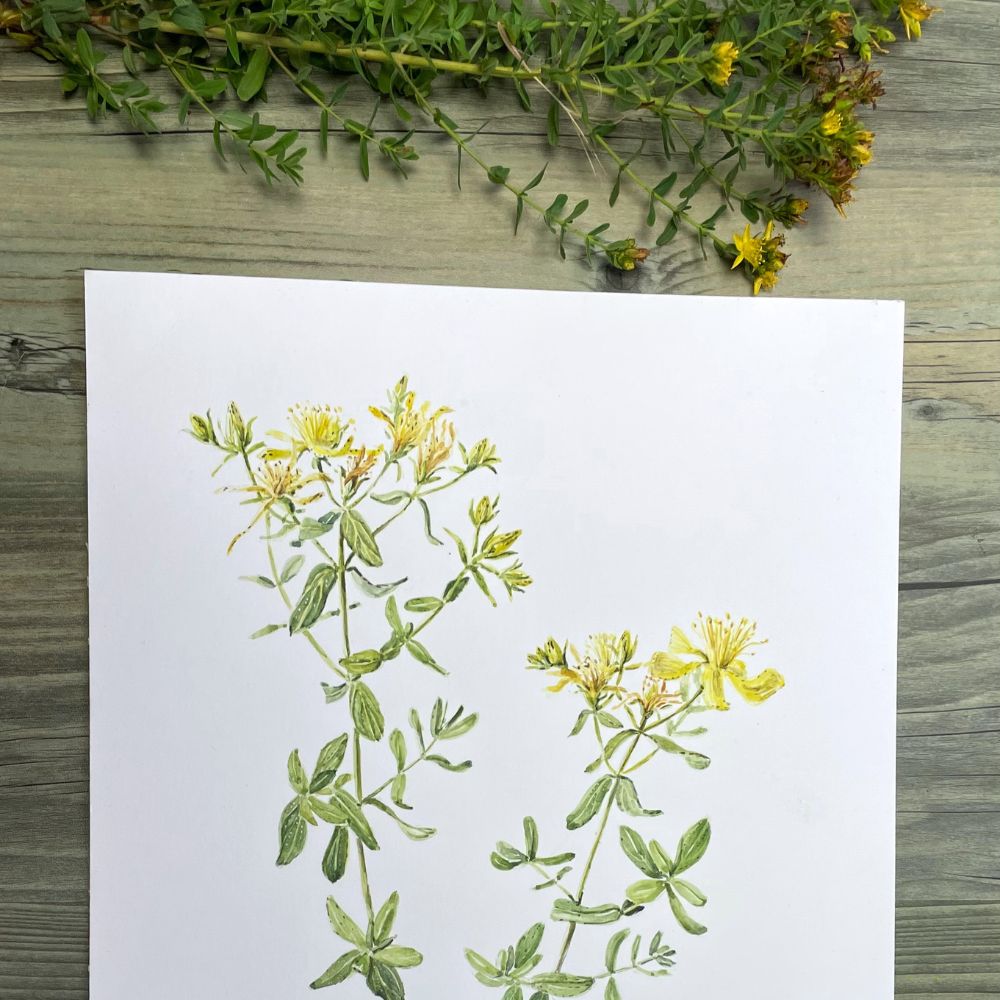 Mein Ziel ist, dass du mit diesem Tutorial ein paar schöne Stunden verbringst, Freude am Malen hast und vielleicht sogar ein wenig überrascht davon bist, wie einfach es sein kann.Am Ende hältst du deine eigene botanische Illustration eines Johanniskrautes in den Händen.