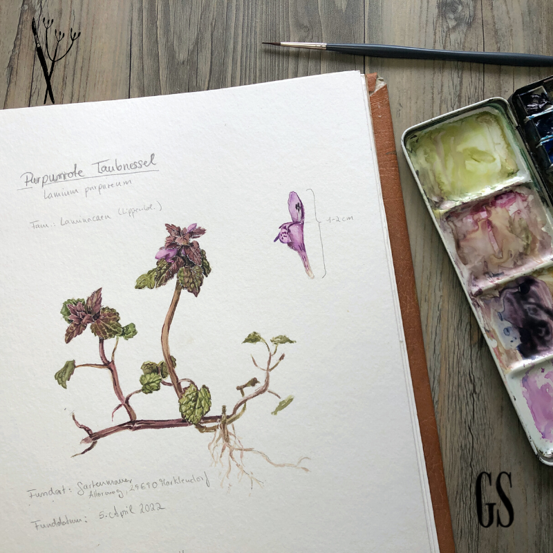 Purpurrote Taubnessel in Aquarell