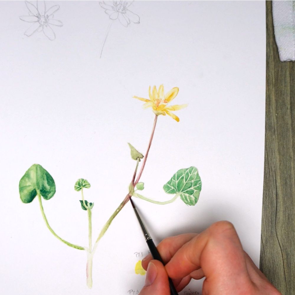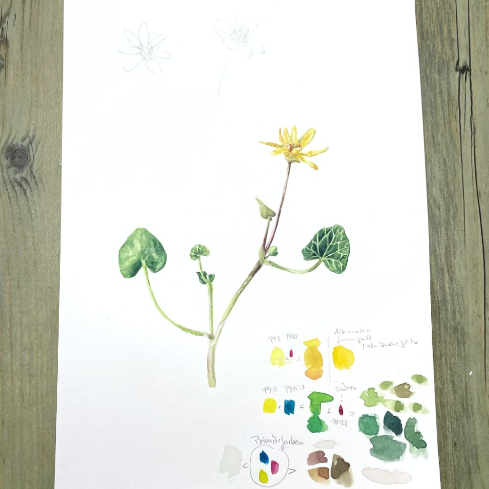 Scharbockskraut in Aquarell - Lerne das 4-Schritte System für Anfänger in botanischer Malerei.