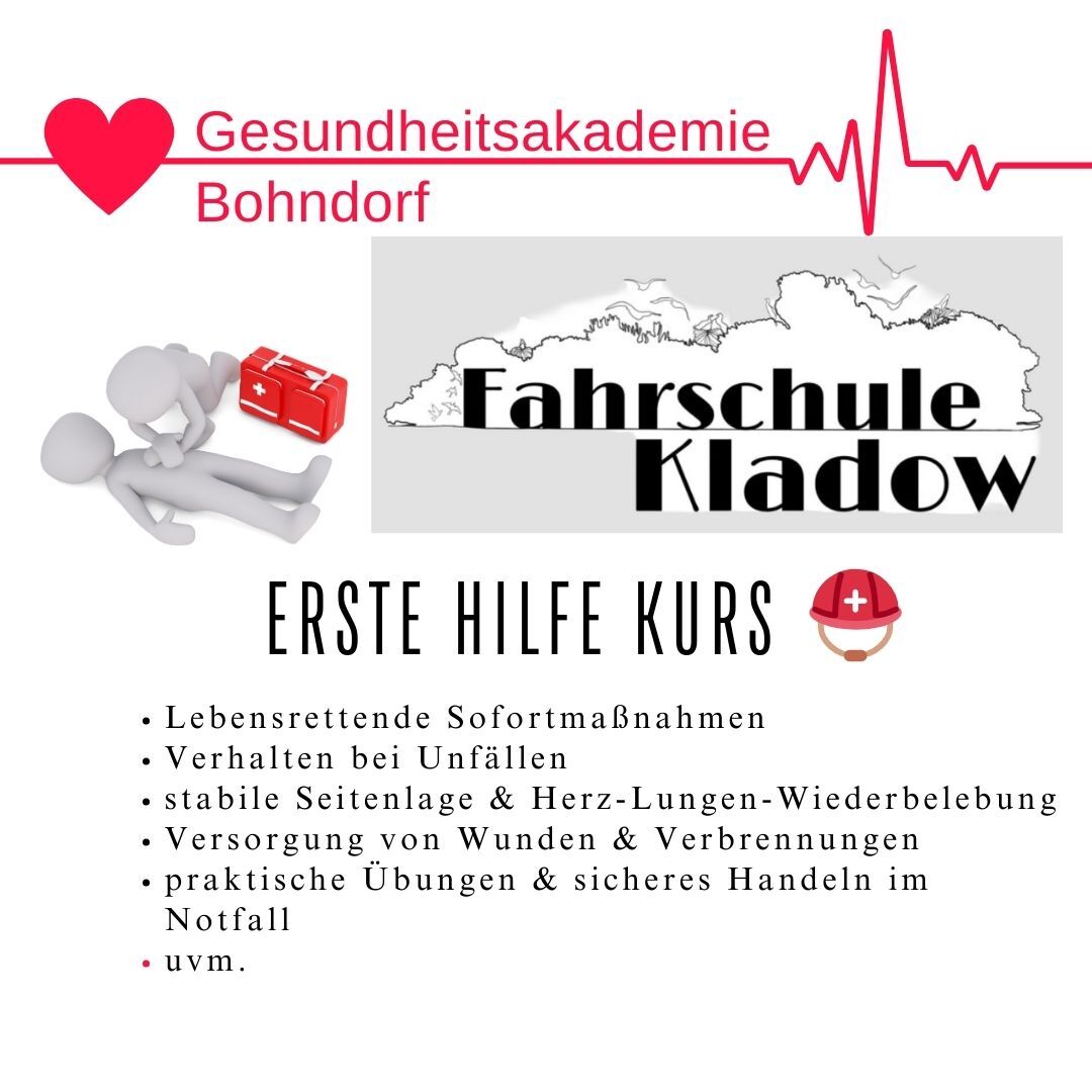 Ab sofort bieten wir speziell für die Fahrschule Kladow Erste-Hilfe-Kurse an – direkt vor Ort und optimal auf eure Bedürfnisse abgestimmt!