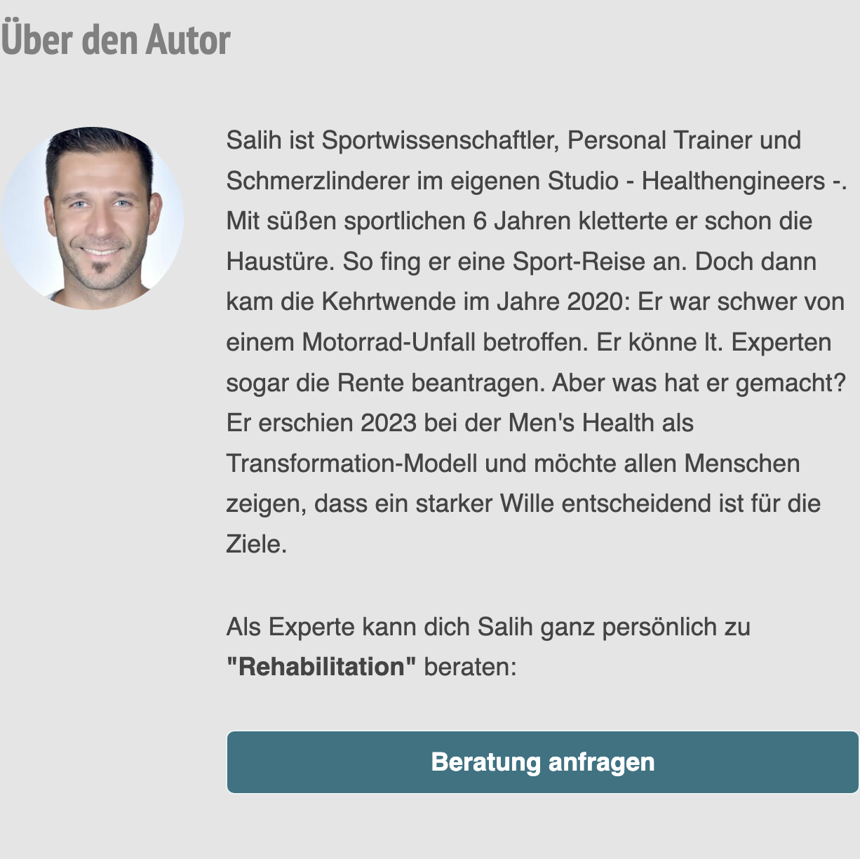 Was Salih Sara als Experte für Rehabilitation PersonalFitness ein Interview gegeben hat, finden Sie in diesem Onlineprodukt.
