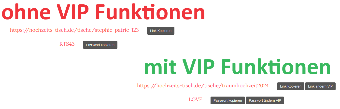 Nach der erfolgreichen Aktivierung der VIP Funktionen kannst du deine Wunsch-URL und dein Wunsch-Passwort selbst ändern.