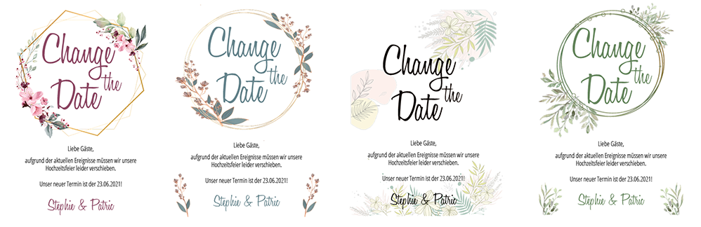 Wähle aus allen verfügbaren "Change the Date" Designs aus. Einmal bezahlen - alle Designs beliebig testen, nutzen und herunterladen.